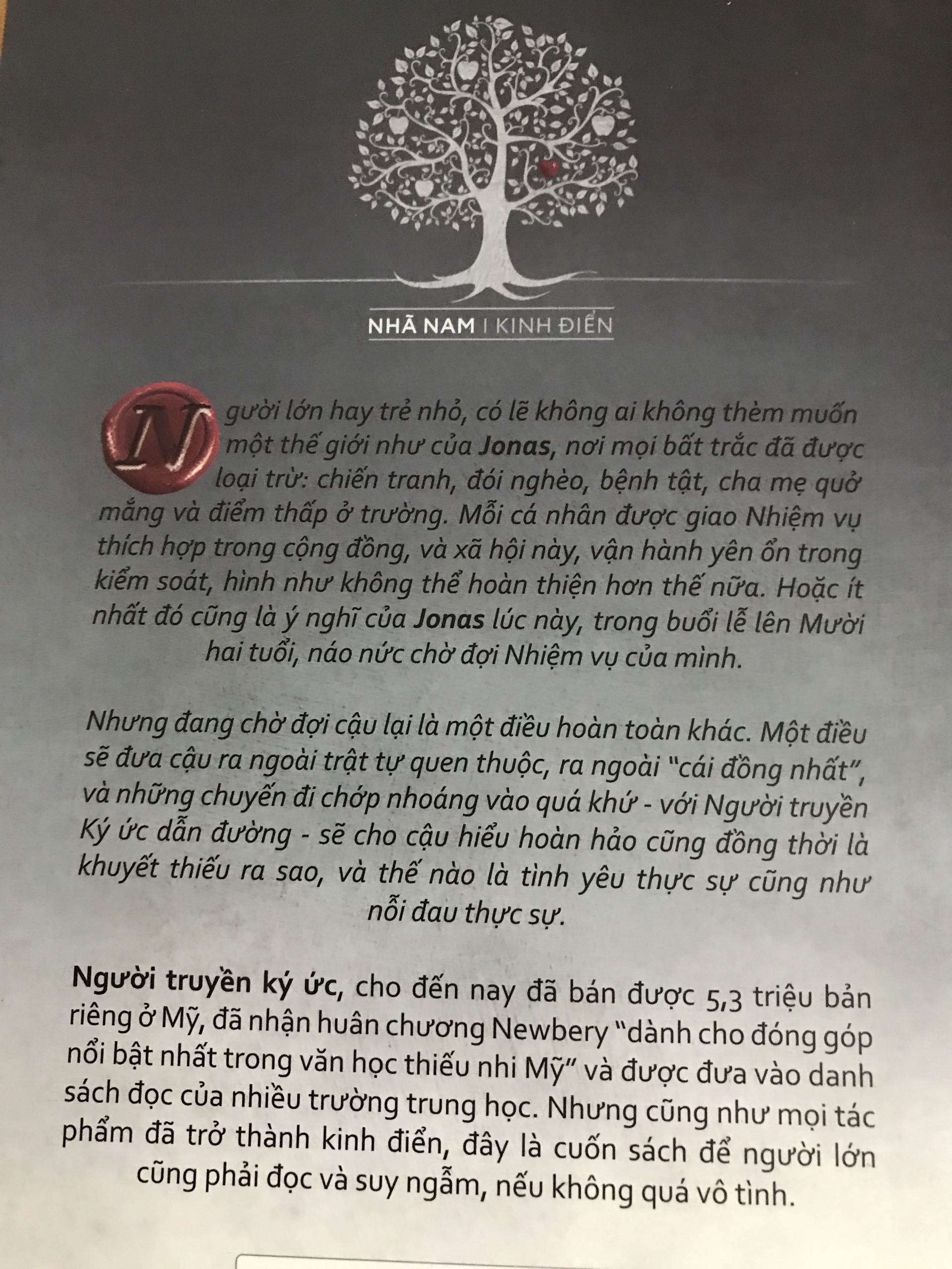 Cho dù một ai đã từng đọc những lời giới thiệu ngắn gọn xung quanh cuốn sách, không đọc cũng không thể nào cảm nhận hết sự kỳ lạ của nó. Người truyền ký ức tuyệt vời ở trí tưởng tưởng và những thông điệp mang theo.