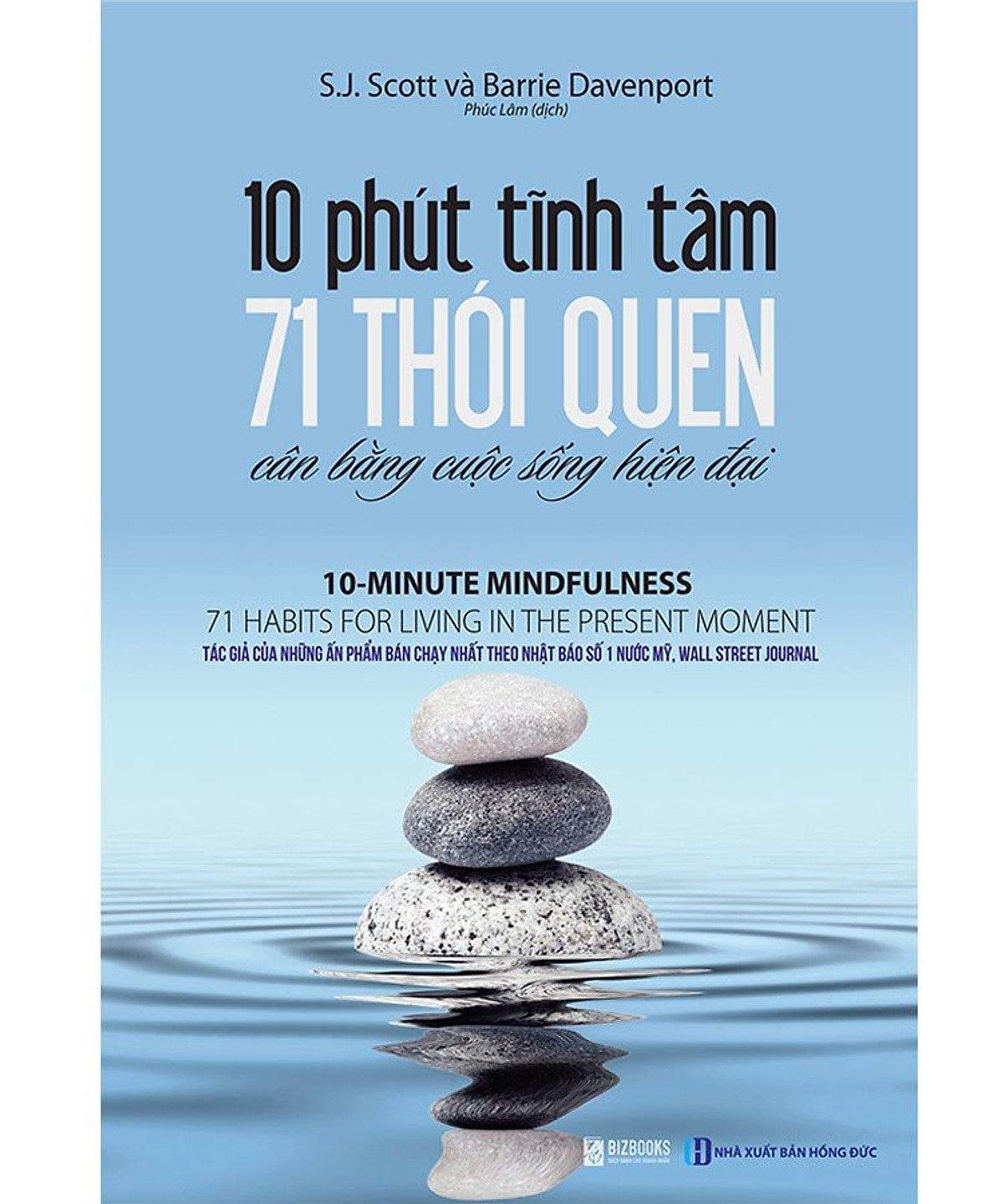 - 10 phút tĩnh tâm - 71 thói quen cân bằng cuộc sống hiện đại Chúng ta đã biết nên tĩnh tâm hưởng thụ cuộc sống, tuy nhiên làm thế nào để có thể tĩnh tâm? Hãy để cuốn sách này dẫn dắt bạn, để sự "tĩnh" thẩm thấu dần vào từng chi tiết của cuộc sống, giúp bạn nhìn thấu tất cả vinh nhục, được mất, thị phi, trắng đen, và dùng sự tỉnh táo và lí trí để nhìn nhận cuộc đời. Mỗi buổi sáng thức dậy, bạn uể oải nhấc mình ra khỏi giường. Bạn nhớ ra tất cả các việc phải làm trong ngày: một vài cuộc họp, một dự án đến hạn hoàn thành, cuộc hẹn gặp bác sĩ, đón con. Chưa hết, còn cuộc tranh cãi nảy lửa của bạn với sếp hôm qua nữa. Tâm trí bạn cứ tua đi tua lại cuộc nói chuyện đấy vài lần, bạn vẫn còn cảm thấy tức giận mỗi khi nghĩ đến. Bạn bước ra khỏi phòng tắm để xem chiếc điện thoại đang rung chuông báo tin nhắn và thư điện tử. Tim bạn đập nhanh, có một sự lo lắng mơ hồ lướt qua khiến bạn bồn chồn như khi uống một cốc cà phê đậm đặc. Bạn lao nhanh vào bếp làm vội suất ăn sáng rồi rời khỏi nhà, trong khi con bạn cãi nhau tranh giành chiếc bánh rán cuối cùng và chồng bạn thì đang hoảng loạn vì không tìm thấy chìa khóa xe. Vậy là bất kỳ khi nào bạn bắt đầu một ngày mới, tâm trí của bạn đều bị rối loạn và sao lãng. Thế giới nội tâm trong bạn gầm lên như những cơn chấn động xảy ra trước khi núi lửa phun trào. Bạn có thấy tình cảnh này khá quen thuộc không? Có lẽ tình cảnh đó không mô tả chính xác cuộc sống và thói quen hằng ngày của bạn, nhưng có lẽ bạn đã trải qua một số phiên bản của nó trước đó. Sao lãng. Căng thẳng. Lo Lắng. Kích động. Suy nghĩ tiêu cực. Kiệt sức về thể chất và cảm xúc. Tất cả những tác nhân đó đóng vai trò lớn hơn nhiều trong cuộc sống so với những gì ta thừa nhận. Phần lớn thời gian, chúng ta đều bắt đầu ngày mới theo một cách chẳng yên bình hay vui vẻ gì. Trên thực tế, hầu hết chúng ta đều cảm thấy xa cách với sự tĩnh lặng, tập trung, và ở thời điểm hiện tại, điều này gây tổn hại cho hạnh phúc và sức khỏe tinh thần của chúng ta. 10 phút tĩnh tâm - 71 thói quen cân bằng cuộc sống hiện đại để tránh cái bẫy của lối sống vô thức Những tình huống trên xuất phát từ vòng luẩn quẩn của các phản ứng, sự sao lãng và căng thẳng, thứ có thể được gọi là “lối sống vô thức”. Việc không ý thức về cách lựa chọn lối sống, thói quen và suy nghĩ gây ra cho hầu hết chúng ta sự bất hạnh và lo lắng. Chúng ta không biết về giá trị thực sự, các ưu tiên của cuộc sống và khao khát để có được một lối sống cân bằng hơn. Chúng ta cũng không ý thức được về sự yên bình và hài lòng ngay hiện tại, bởi vì chúng ta cứ mãi bận tâm tới những hối tiếc và lo lắng trong quá khứ cũng như trong tương lai. “10 phút tĩnh tâm” kéo bạn trở về thực tại Tĩnh tâm là bạn nhận thức một cách có chủ đích về hiện tại trong khi vẫn chú ý đến cảm xúc, suy nghĩ và cảm giác của cơ thể. Bạn chủ động tập trung và hướng nhận thức của bạn đến điều bạn đang làm hoặc đang suy nghĩ như khi rửa bát, nói chuyện với vợ/chồng, chơi với con, thực hiện một dự án hoặc khi không làm gì cả. Đối với những người thường xuyên bị cuốn theo các mối bận tâm trong cuộc sống thường ngày, tĩnh tâm giúp họ trân trọng từng giây phút và có được một tầm nhìn lớn hơn về cuộc sống. Nó cũng giúp chúng ta thay đổi các phản ứng theo thói quen bằng cách dừng lại đủ lâu để ta lựa chọn cách hành động. Những lợi ích của tĩnh tâm được chia thành ba loại: