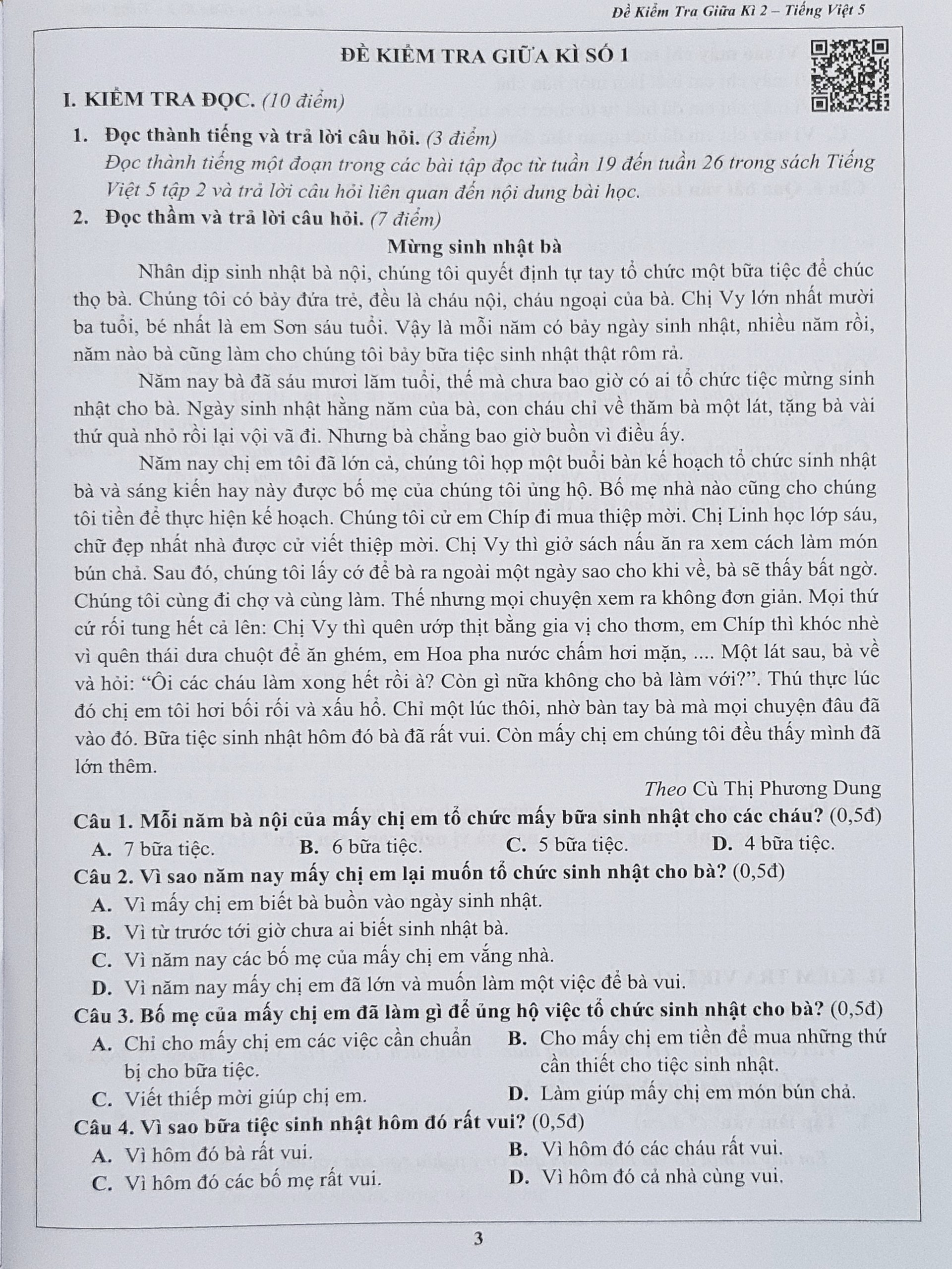 Đề kiểm tra Tiếng Việt lớp 5, học kì 1 + 2 Dạng bài tập bám sát cấu trúc để thi giúp học sinh ôn tập và rèn luyện để tự tin khi bước vào kì thi. Dòng kẻ ô ly giúp học sinh viết và làm bài thuận tiện. Hỗ trợ phụ huynh tham gia nhóm để giải đáp thắc mắc về bài tập