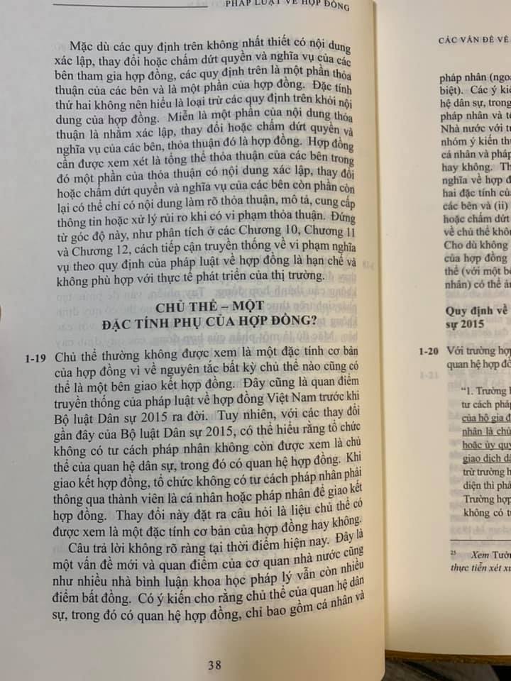 - Pháp Luật Về Hợp Đồng Các Vấn Đề Pháp Lý Cơ Bản (tái bản lần 1, 2024) LS. Trương Nhật Quang Năm xuất bản 2024 Phiên bản 2st Edition Loại bìa Bìa mềm Số trang 900 ISBN: 9786044026060 Nhà phát hành : NXB Dân Trí Giá bìa: 800.000 đ Nội dung sách: Đây là cuốn sách đầy đủ nhất liên quan đến pháp luật về hợp đồng. Trải dài trong gần 900 trang, cuốn sách phân tích các vấn đề liên quan đến (i) giao kết hợp đồng; (ii) hiệu lực hợp đồng; (iii) nội dung hợp đồng; (iv) vi phạm hợp đồng và biện pháp khắc phục; (v) miễn trừ trách nhiệm; (vi) chuyển giao quyền và nghĩa vụ; (vii) quyền của bên thứ ba trong hợp đồng vì lợi ích của bên thứ ba; và (viii) nguyên tắc chọn pháp luật áp dụng và cơ quan giải quyết tranh chấp hợp đồng. Đây là cuốn sách duy nhất trình bày các vấn đề liên quan đến pháp luật về hợp đồng cả từ góc độ lý thuyết và thực tế. Ngoài việc phân tích các quy định của các văn bản pháp luật, cuốn sách cũng phân tích các án lệ và bản án. Đây là cuốn sách giúp các luật sư hành nghề có thể tham khảo khi tư vấn trong các giao dịch thương mại có yếu tố nước ngoài. Cuốn sách tập trung phân tích phạm vi mà các bên có thể thỏa thuận trong hợp đồng để phân bố rủi ro. Đây là cuốn sách duy nhất có hệ thống tra cứu đầy đủ giúp người đọc tiện tra cứu. Cuốn sách có (i) bảng tra cứu từ khóa; (ii) bảng tra cứu án lệ, bản án và quyết định; và (iii) danh sách các tài liệu trích dẫn.