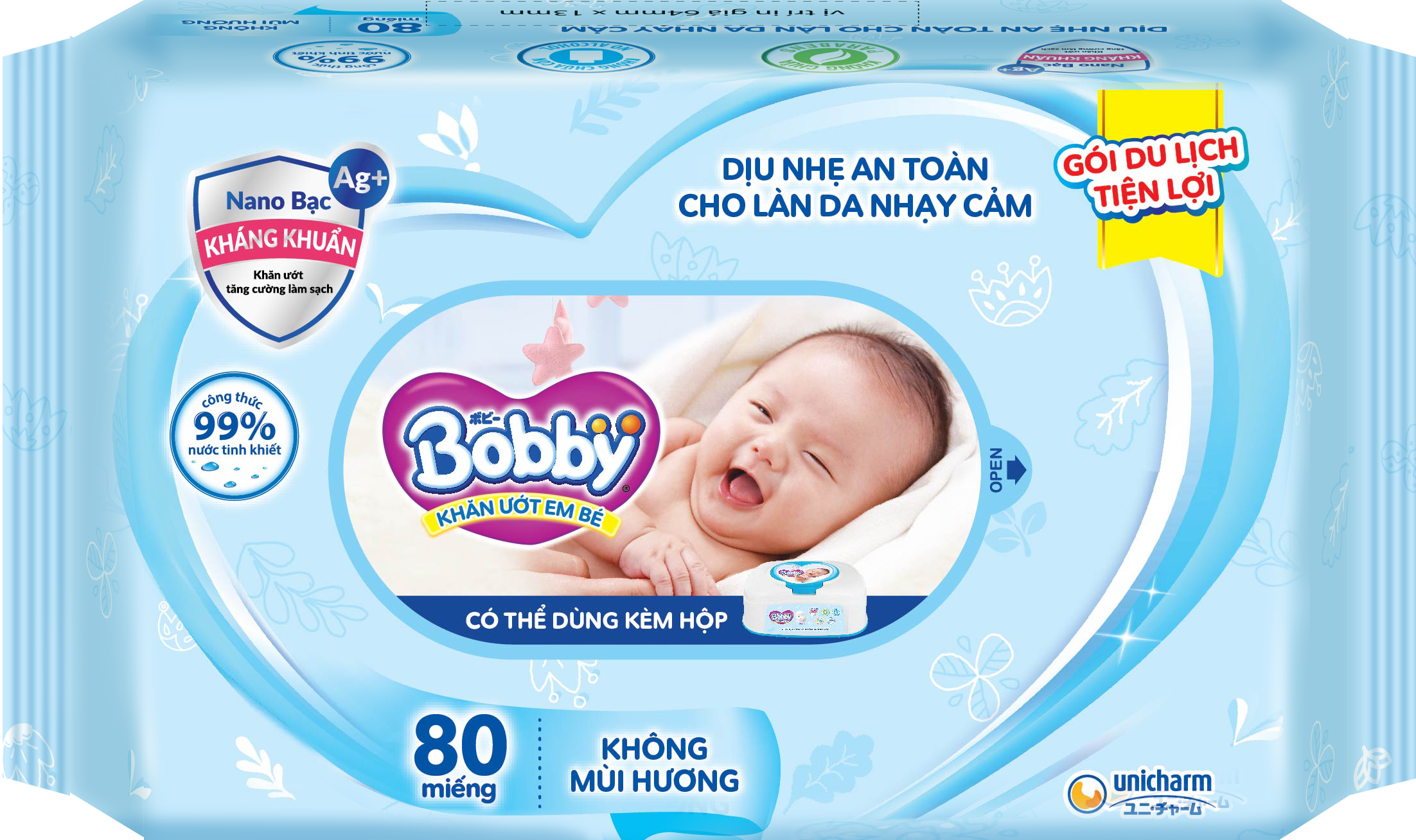 Combo Tiết Kiệm: 6 Gói Khăn Ướt Bobby Care Không Hương 80 Miếng/Gói là sản phẩm chăm sóc sức khỏe giúp Bé yêu và cả gia đình tránh nhiễm khuẩn một cách An toàn và Ưu việt! Nhờ ứng dụng công nghệ Nano Bạc thuần vật lý, đặc biệt loại bỏ nguy cơ kháng kháng sinh - hiện tượng thường gặp khi sử dụng các chất kháng khuẩn khác.