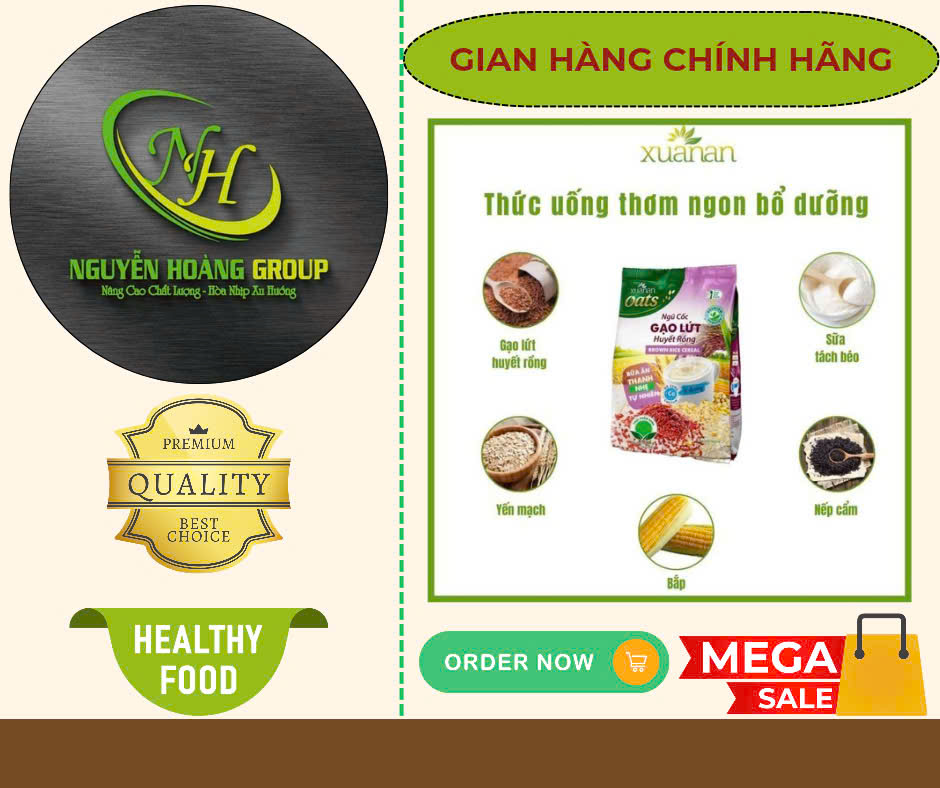 Thành Phần: Gạo lứt huyết rồng , Yến Mạch , Ngô , Đậu Xanh , lúa mạch , múa mỳ , canxi Công dụng : Trong ngũ Cốc có đường ISOMALT : Đây là loại dường chiết xuất từ củ cải đường , được viện dinh dưỡng và trung tâm nghiên cứu bệnh đái tháo đường khuyên dùng => Rát tốt cho sức khỏe , phòng bệnh mãn tính đặc biệt là bệnh tiểu đường. Đối Tượng Sử dụng: