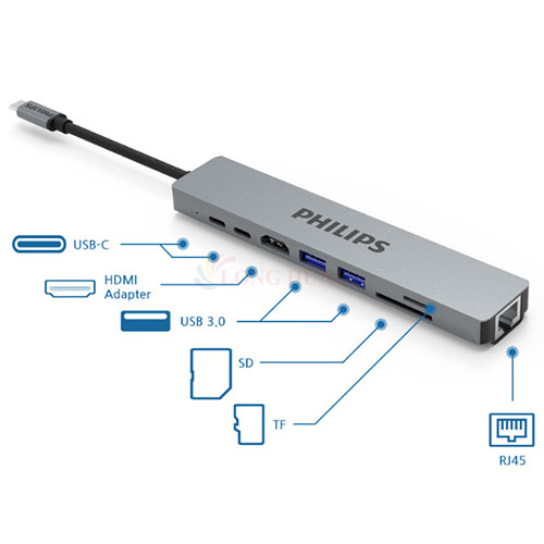 ✨Cổng chuyển đổi Philips 8-in-1 Multifunction Adapter USB-C Hub SWV6118G/71 - Hàng chính hãng