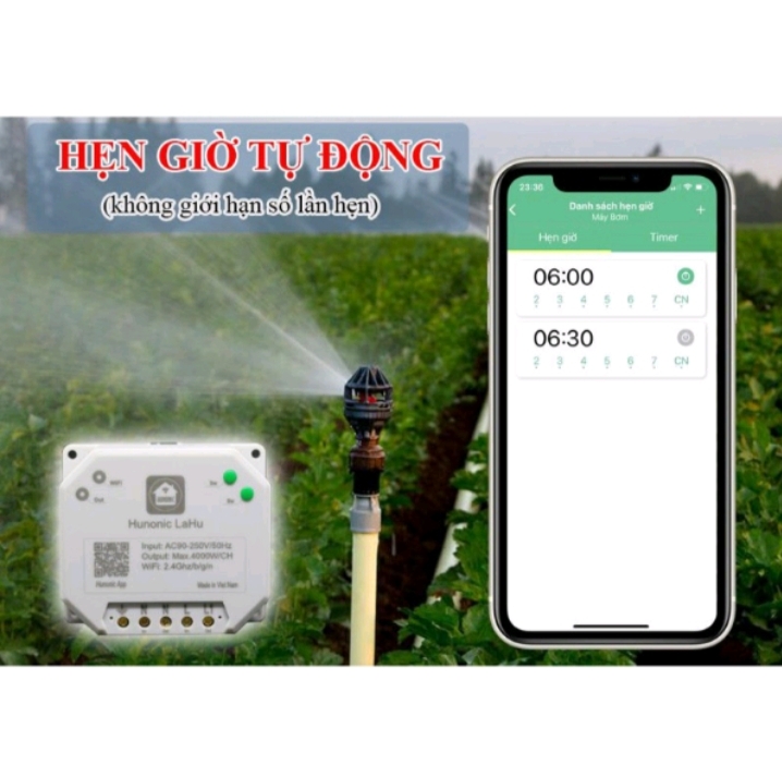 Công tắc wifi Lahu 4000W dùng cho máy bơm, bình nóng lạnh. Công tắc điều khiển từ xa qua điện thoại Made in Việt Nam HÀNG VIỆT NAM - CHẤT LƯỢNG CAO! Công tắc wifi Lahu 4000W dùng cho bình nóng lạnh, máy bơm, điều hò được thiết kế bên trong tỉ mỉ, bên ngoài chắc chắn, cách điện tốt với công suất tải lên đến 4000W Công tắc điện thông mình có tính năng: