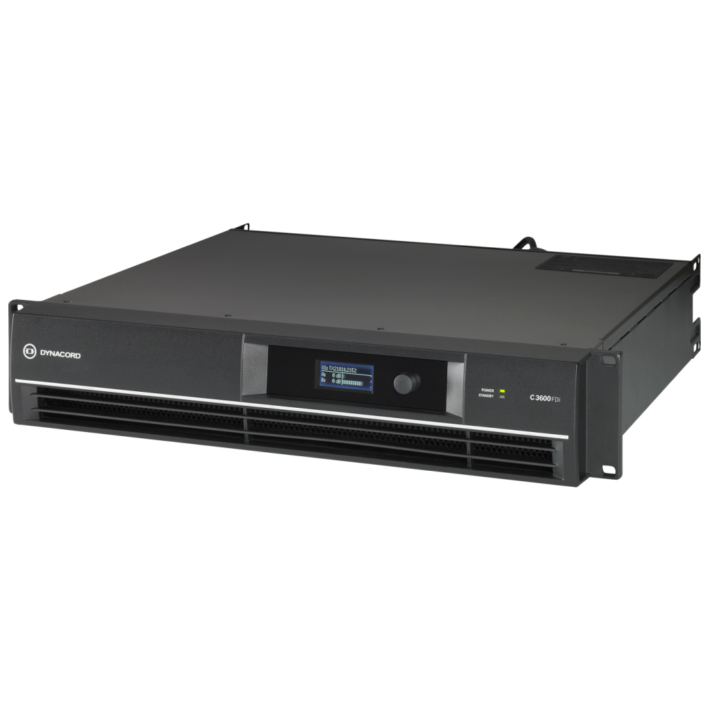 - Bộ khuếch đại Dynacord C Series là bộ khuếch đại DSP lắp đặt chuyên dụng được tối ưu hóa để hoạt động 24/7. Ngoài hoạt động trở kháng thấp (2 Ohms, 4 Ohms hoặc 8 Ohms), C3600FDi có thể điều khiển trực tiếp các đường loa 100 V (-1,5 dB) mà không cần biến áp đầu ra.