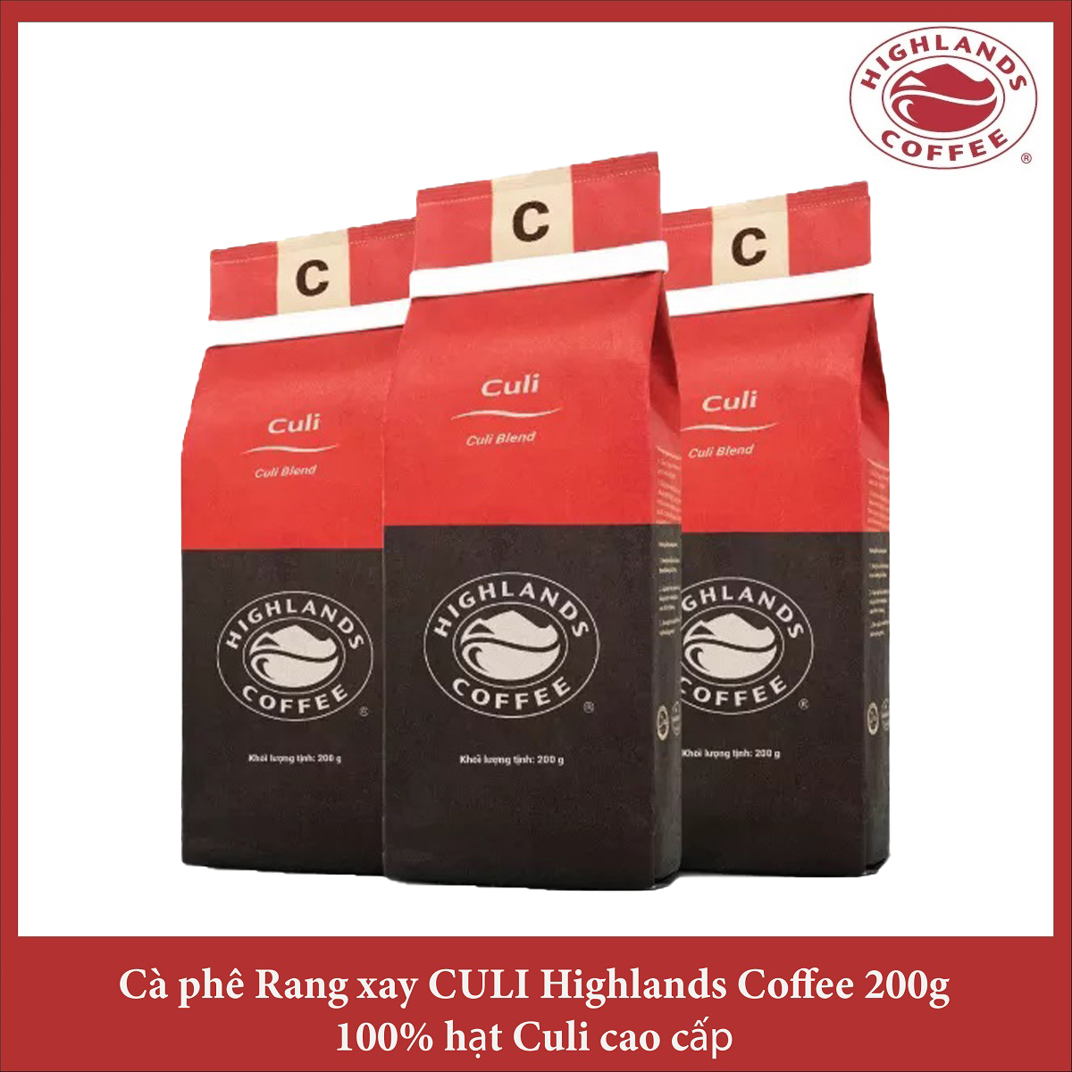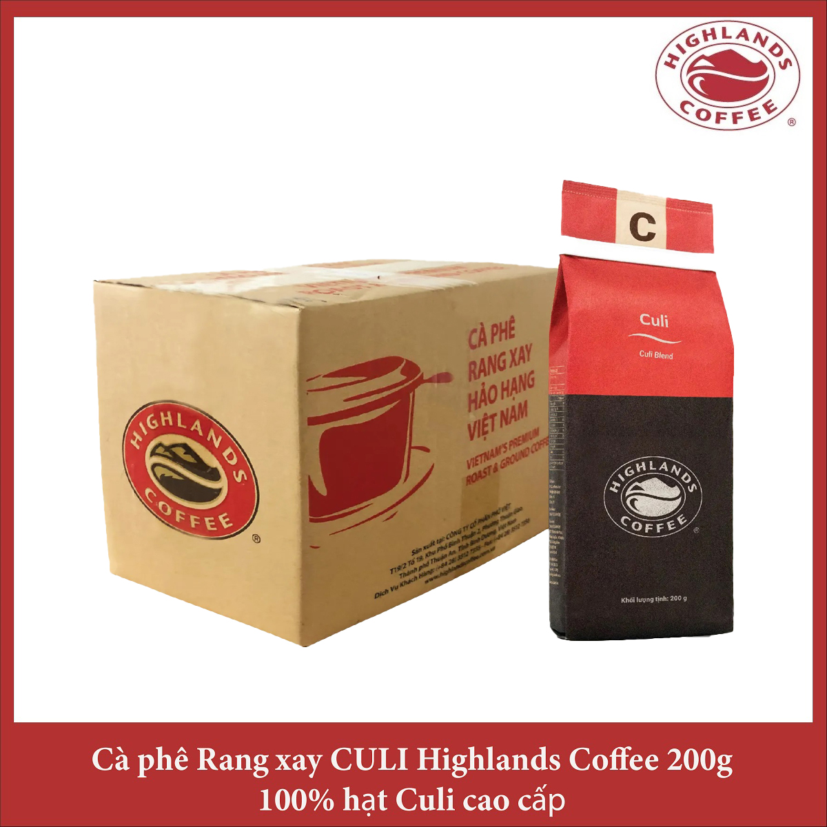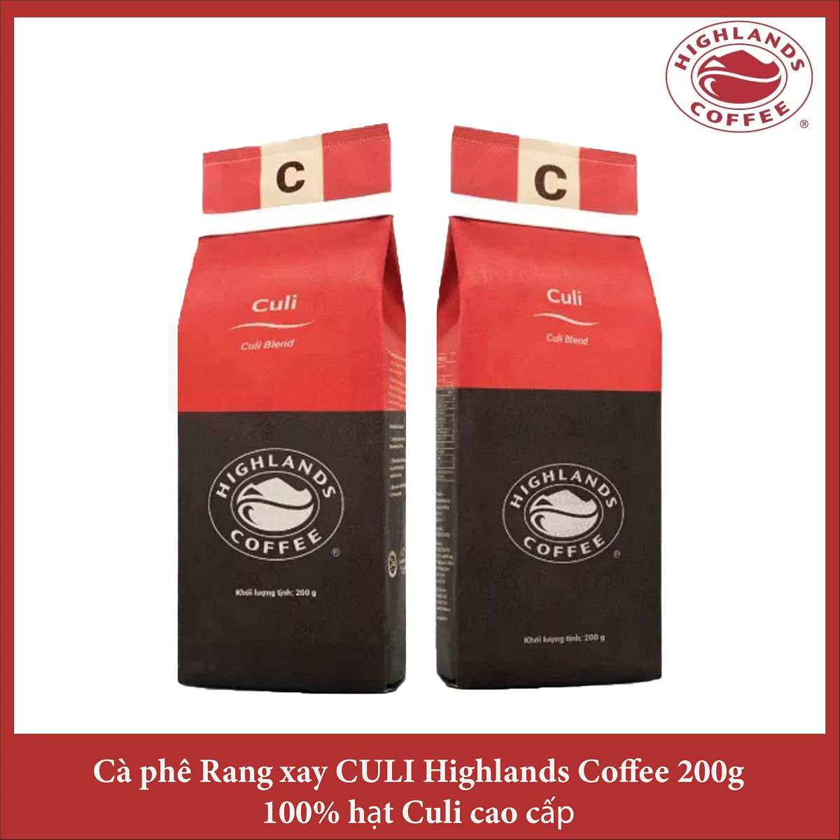 Cà Phê Rang Xay Culi Highlands Coffee (200g) Là sản phẩm được chắt lọc từ những hạt cà phê ngon nhất cùng bí quyết và công nghệ rang xay hiện đại. Hạt cà phê thượng hạng trồng ở vùng cao nguyên của Việt Nam được rang và phối trộn theo công thức độc đáo tại Highlands