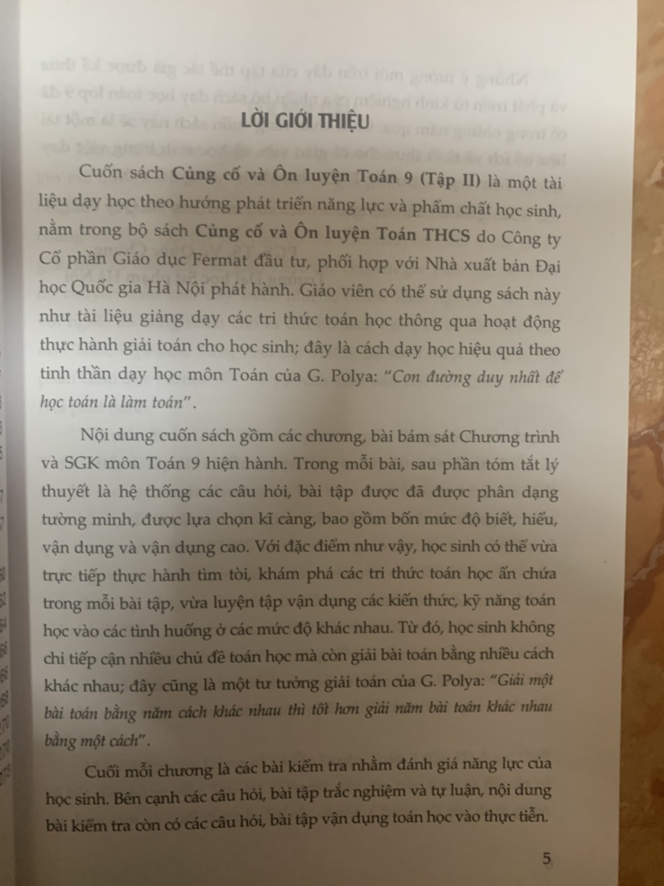 Thông tin chi tiết: Công ty phát hành: Công ty cổ phần Fermat Tác Giả: Nhiều tác giả Số trang: 267 Năm xuất bản: 2021 Khổ sách: 17x24cm Hình thức :bìa mềm NXB: NXB Đại Học Quốc Gia Hà Nội Giới Thiệu sách: sách gồm các chương và bài tập bám sát chương trình và SGK hiện hành, rất thuận lợi cho GV và HS sử dụng có hiệu quả, trong các trường THCS và các cơ sở GD tổ chức dạy học 2 buổi/ngày, dạy thêm, học thêm, đảm bảo yêu cầu tối thiểu về chuẩn kiến thức, kỹ năng và thái độ của Chương trình giáo dục phổ thông hiện hành. Sách được biên soạn dựa trên thực tiễn sinh động của việc dạy và học toán hiện nay ở trường THCS theo hướng phát triển năng lực và phẩm chất của học sinh; là một tài liệu tham khảo thực sự bổ ích cho GV và HS, góp phần thiết thực vào quá trình đổi mới dạy học.