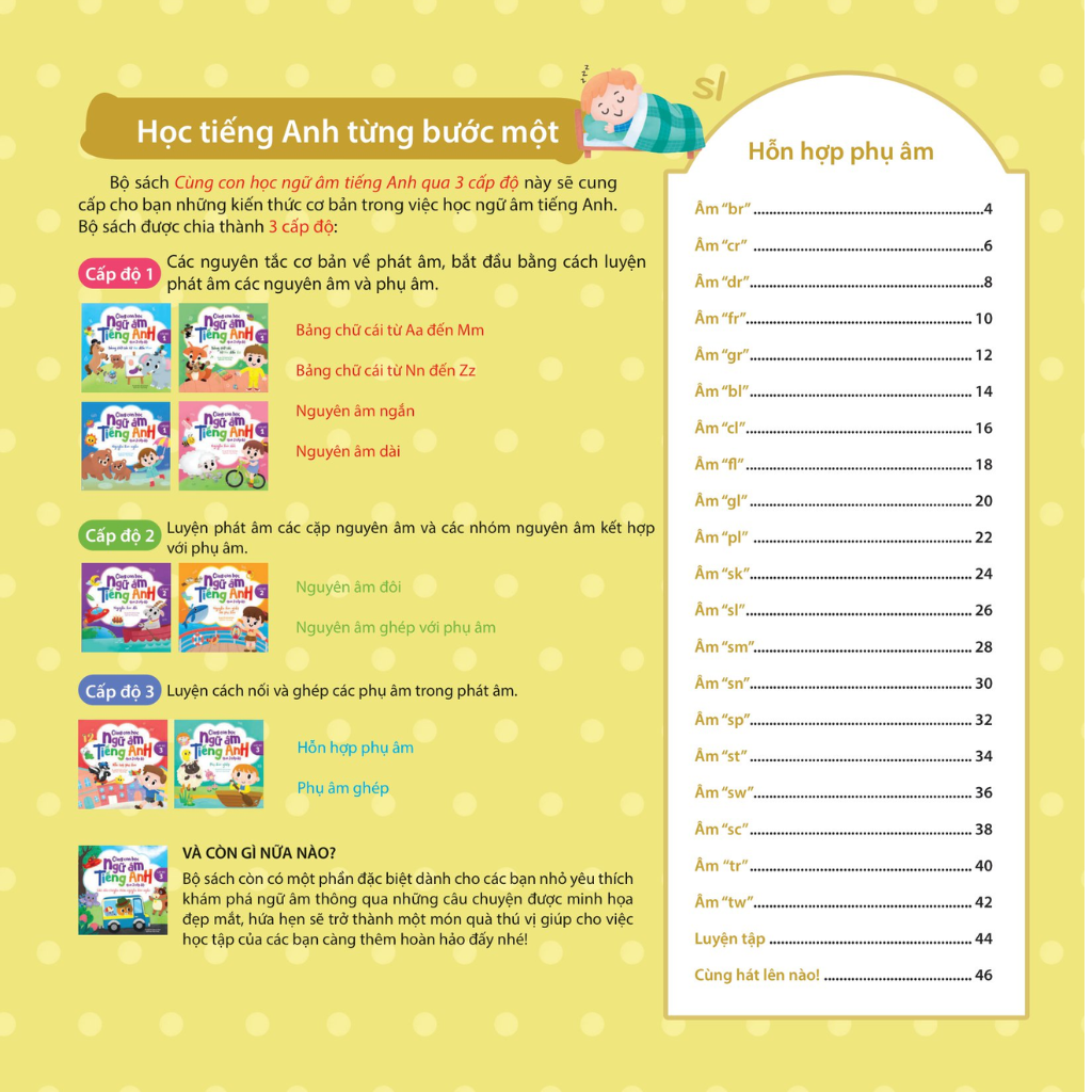 Với những ví dụ sinh động, dễ tiếp thu, kèm theo các bài thực hành nâng cao đầy tính thực tiễn và các audio dạy phát âm chuẩn bằng giọng Anh-Mỹ bản xứ, bộ sách sẽ cung cấp cho các em những kiến thức cần thiết để học ngữ âm tiếng Anh. Đúng như tên gọi, bộ sách được chia thành ba cấp độ từ cơ bản đến phức tạp, hướng dẫn các em rèn luyện từng bước một để nắm chắc các âm trong tiếng Anh. Ngoài ra, bộ sách còn lồng ghép những bài hát vui nhộn và những câu chuyện ngắn được minh họa đẹp mắt, hứa hẹn sẽ giúp cho việc học tập của các em thêm phần thú vị và hiệu quả.
