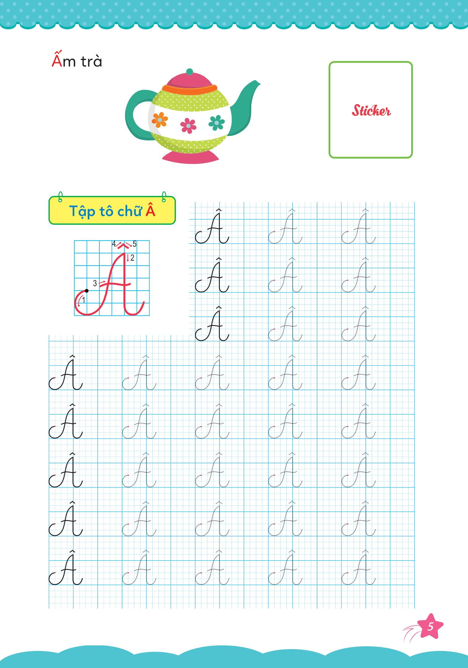 ✨Cùng Khủng Long Tập Viết Chữ Cơ Bản - Chữ Cái Tiếng Việt Viết Hoa - Quyển 6 - Sticker Bé Gái