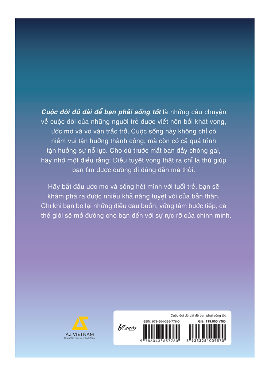 Cuộc đời đủ dài để bạn phải sống tốt là những câu chuyện về cuộc đời của những người trẻ được viết nên bởi khát vọng, ước mơ và vô vàn trắc trở. Cuộc sống này không chỉ có niềm vui tận hưởng thành công, mà còn có cả quá trình tận hưởng sự nỗ lực. Ngay cả khi những gì bạn mới chỉ nhìn thấy trước mắt là chông gai, hãy nhớ: Điều gọi là tuyệt vọng thật ra chỉ là thứ buộc bạn phải đi đúng đường mà thôi. Dòng đời ngày càng hối hả, chậm lại mới có thể đi xa hơn.