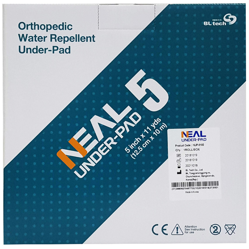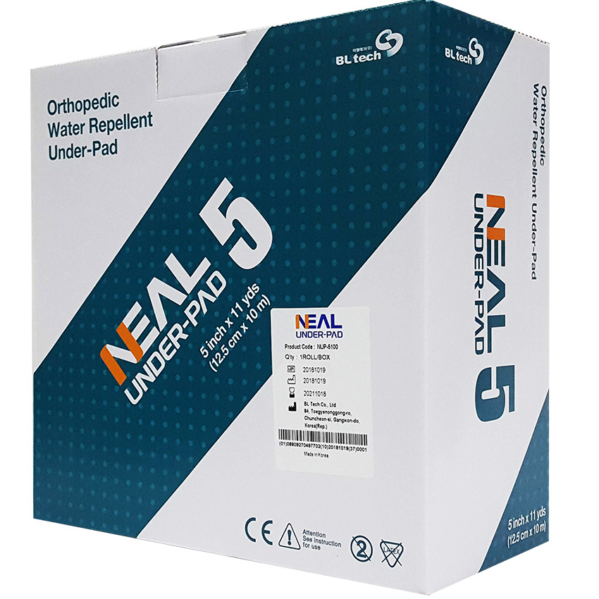 CÔNG DỤNG: Cuộn lót chống thấm nước Neal Under-Pad NUP-5100 (12.5cmx10m) giúp bảo vệ da, vùng bị ảnh hưởng từ nẹp và suốt quá trình băng bó bột trong các trường hợp gãy xương, nứt xương hay bong gân, hoặc cần cố định xương khi chỉnh hình. Loại này được sử dụng chung khi thực hiện băng bó bột. Nó giúp bệnh nhân có thể tắm hay bơi, không giống như các loại cotton hay băng khác khi thực hiện chung với băng bó bột. BL tech co., Ltd. sở hữu bằng sáng chế tại Hàn Quốc. ĐẶC ĐIỂM: