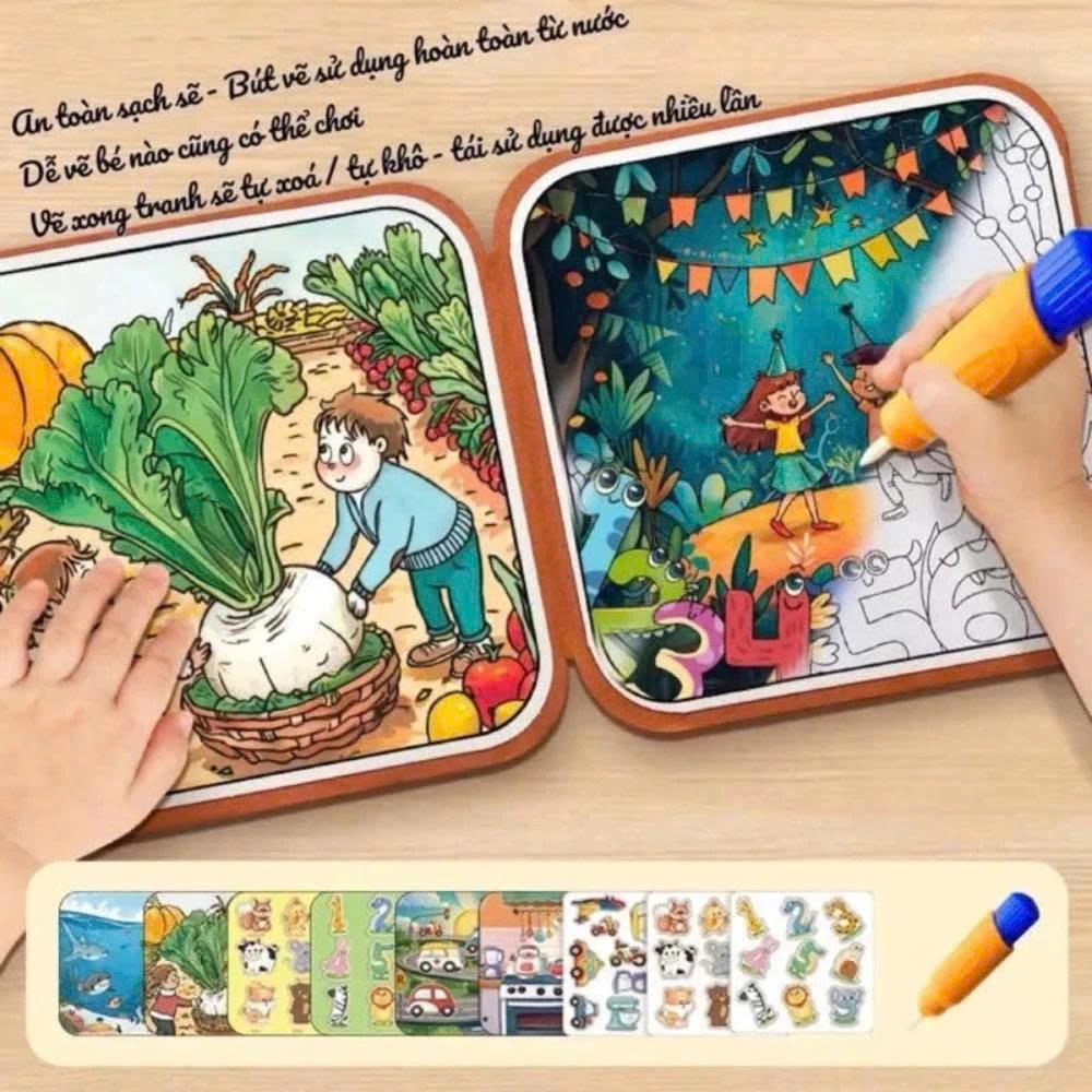 Cuốn sổ ma thuật bóc dán vẽ tranh bằng nước thông minh cho bé phát triển tư duy trí não