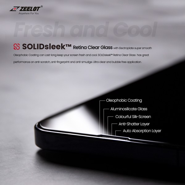 Kính Cường Lực ZEELOT SOLIDSLEEK Chống Vân Tay Có Viền Đen cho iPhone 13Mini/13Pro/13ProMax - Hàng chính hãng Tính Năng Sản Phẩm -Công nghệ SOLIDsleek độc quyền của Zeelot. Vượt qua 6 bài test: