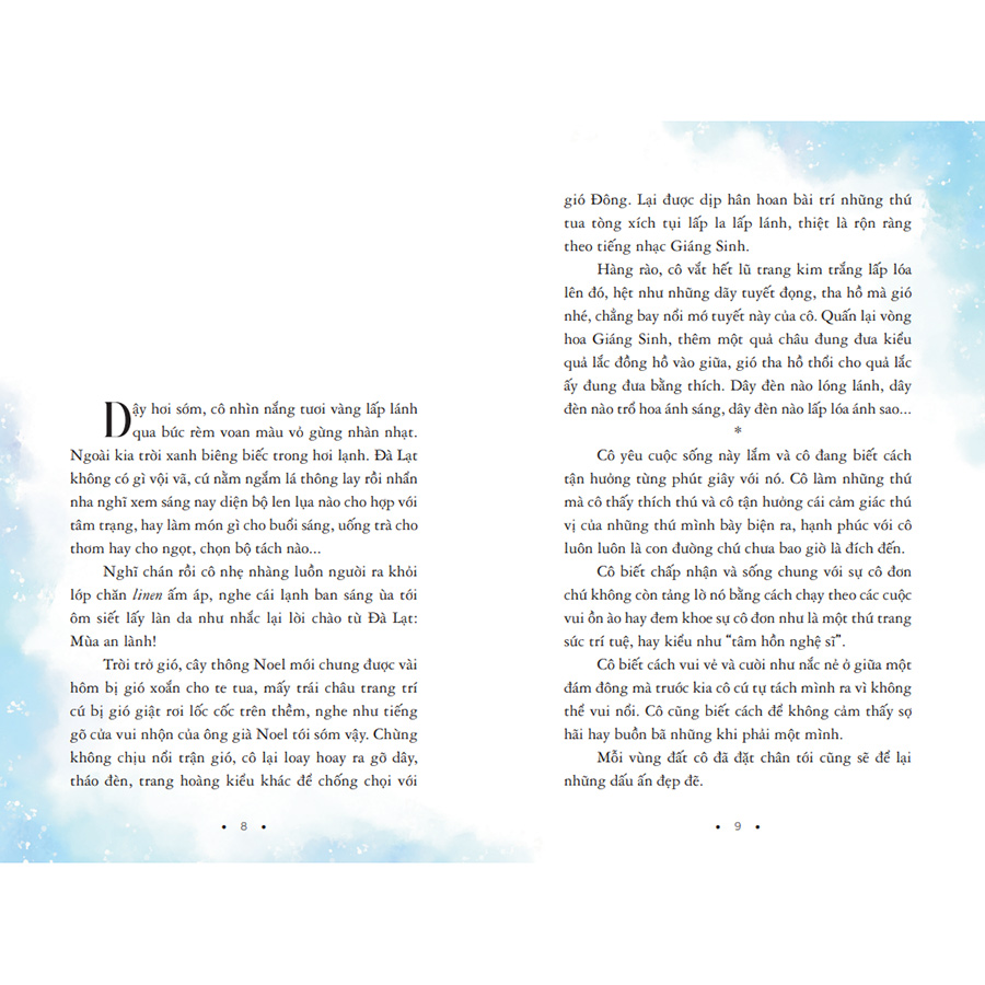 Lưu ý : Sách chỉ tặng quà cho bản in đầu tiên Trong hành trình trưởng thành của mình, chúng ta sẽ gặp gỡ được vô số người: Có người chiến đấu với thời gian, có người sợ thua kém bạn bè. Cũng có người mỗi ngày mở mắt, mỗi tối khép mi đều chỉ tồn tại cơm áo gạo tiền. Có người thấy bản thân hoảng loạn, cảm giác thua kém và tự ti khiến vô số ước mơ vì vậy mà chìm xuống vực thẳm. Hiện thực tàn nhẫn đến mức vùi lấp những ước mơ khi chúng chỉ vừa kịp nảy mầm. Có người một năm đi bệnh viện không biết bao nhiêu lần, tự mình bước vào khu vực cấp cứu. Trọn vẹn quá trình đều không rơi một giọt nước mắt. Nhưng hiển nhiên trong tim đầy gai góc, và nhiều vết sẹo đến đau lòng. Thế giới của người trưởng thành ngoài mặt bình lặng giản dị, nhưng trong lòng mỗi người đều là một trận chiến. “Đừng khóc trước khi đi ngủ” tựa một cái ôm gửi đến bạn - những người đang cảm thấy cuộc sống này không dễ dàng. Vết thương nào rồi cũng sẽ lành, nhưng nếu bạn bỏ cuộc ngay vào thời khắc ấy, người yêu thương cậu sẽ mang những vết thương mới. Sự có mặt của bạn vốn dĩ vẫn luôn có ý nghĩa với rất nhiều người. Mong bạn có thể đóng gói muộn phiền, chuyển giao vào hòm thư cũ, sống một đời rực rỡ. Mắt bạn đẹp như vậy, cười lên xinh biết bao. Bạn cười lên rất đẹp, nhớ cười nhiều một chút, nhất định phải vì chính mình mà vui vẻ sống. “Bất cứ khi nào bạn mệt mỏi, hãy tin rằng thế giới bao la, biển người rộng lớn, sẽ luôn tồn tại nơi chốn để bạn nương náu tâm hồn, yên ổn sống tốt phần đời sau này. Chúc bạn xuân sang, hạ qua dịu dàng, thu đến, đông tàn bình an”. Cảm ơn vì sau hàng ngàn lần bật khóc, bạn vẫn kiên cường bước tiếp.