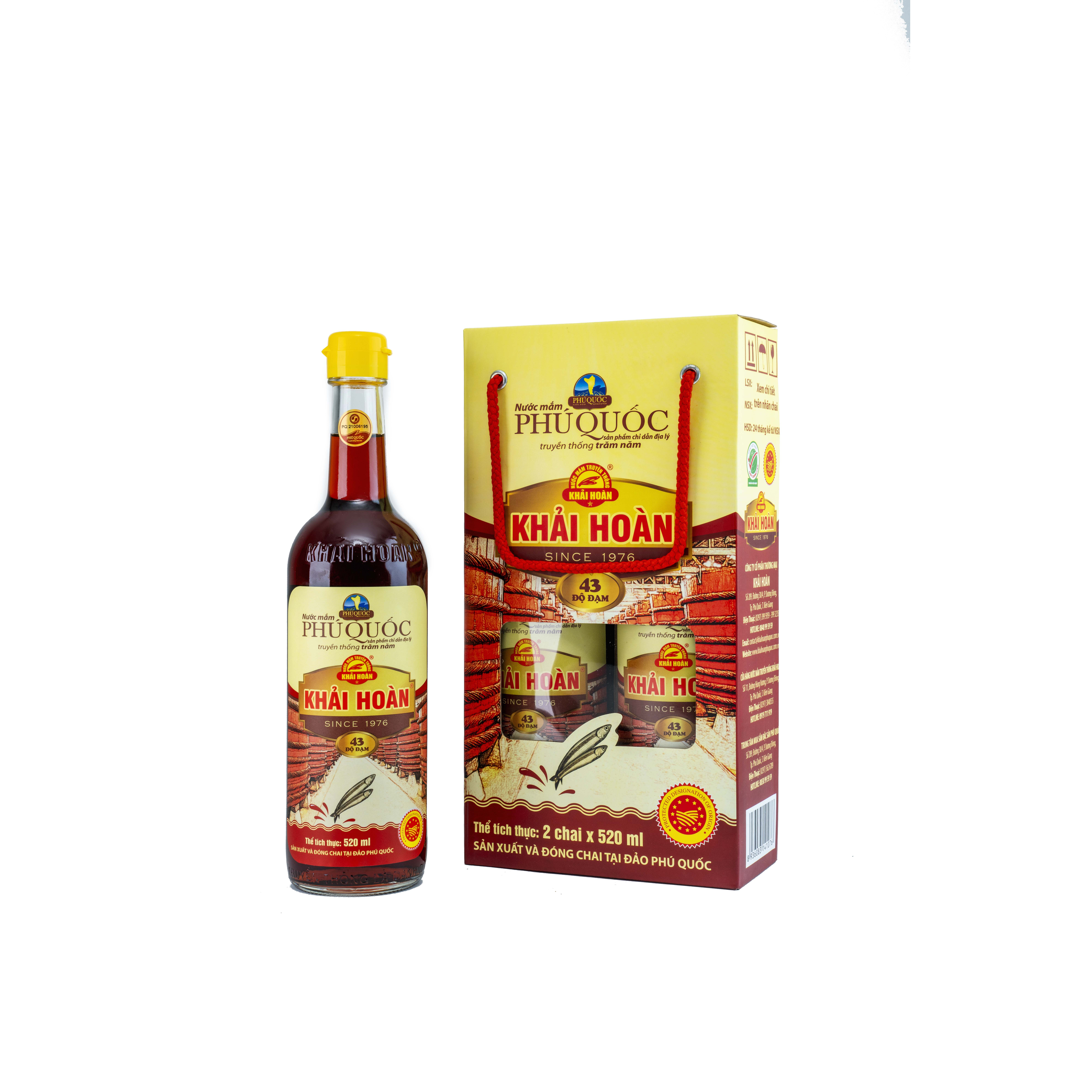 ✨Đặc Sản Phú Quốc - Hộp 2 Chai Thủy Tinh Nước Mắm Phú Quốc Khải Hoàn 43 Độ Đạm (520Ml X 2) - Ocop 5 Sao