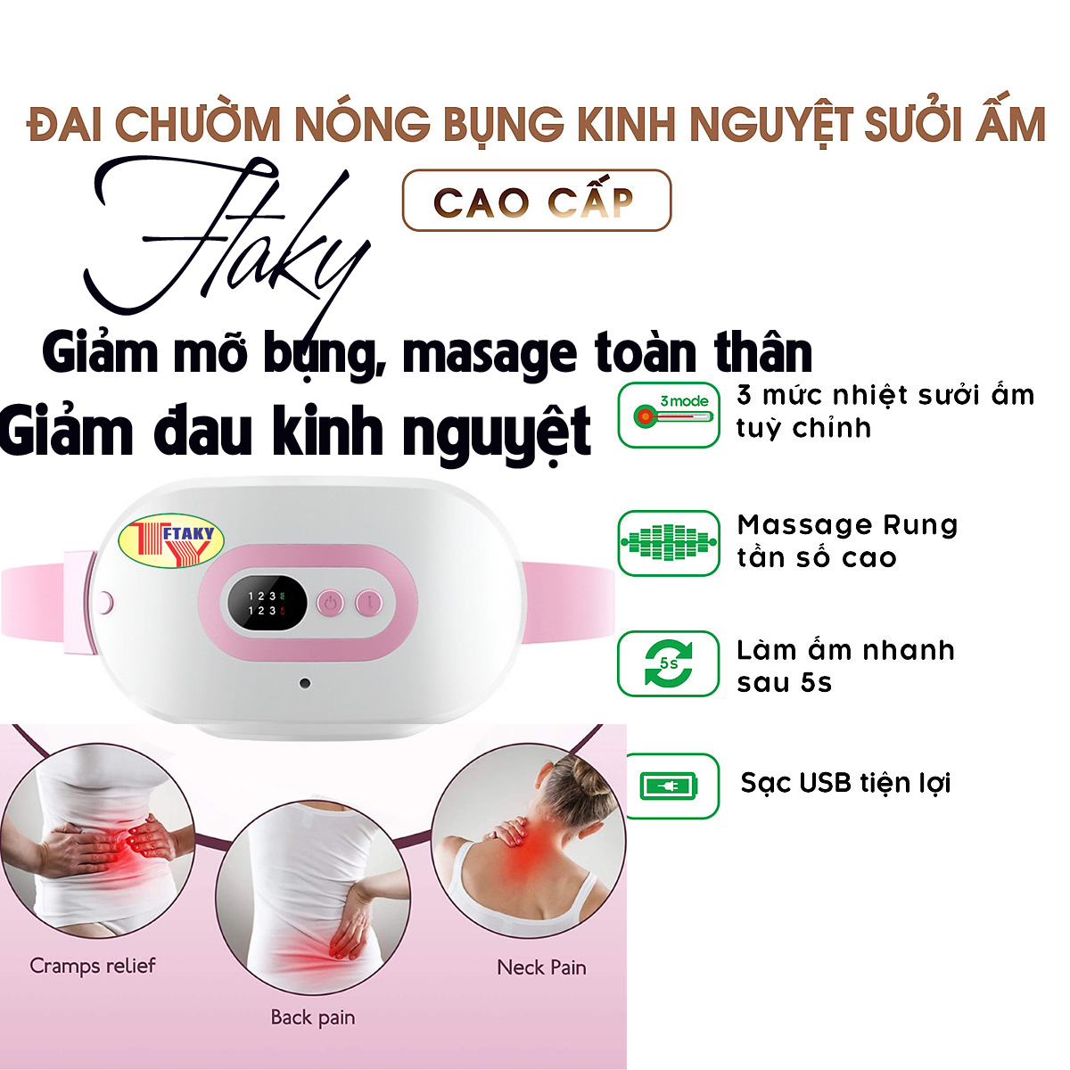 Máy massage chườm bụng kinh kèm đai giúp làm ấm giảm đau bụng kinh cho phụ nữ đến kỳ