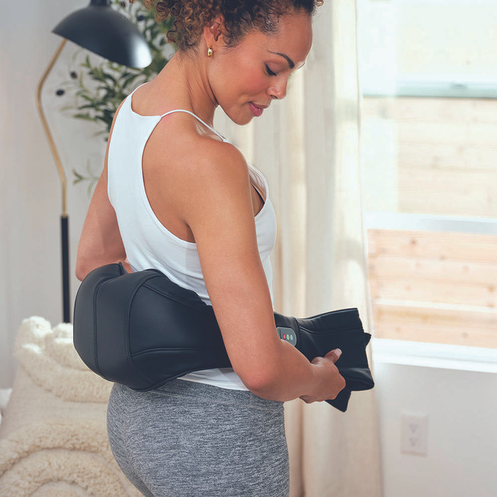 Đai massage hồng ngoại HoMedics NMS-615HJ thiết kế 2 cụm con lăn massage Shiatsu 3D cho bạn trải nghiệm như tại Spa, thiết kế thoải mái quấn quanh cổ, vai và lưng, tay cầm thiết kế Flex tích hợp tiện lợi, dễ dàng điều chỉnh lực tác động.