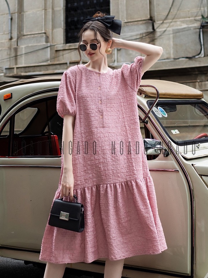 ღ THÔNG TIN SẢN PHẨM: Tên sản phẩm: Đầm hồng sen tay loe Chất liệu: gân ý Chi tiết sản phẩm: không lót, không túi Thông số size: S, M, L,