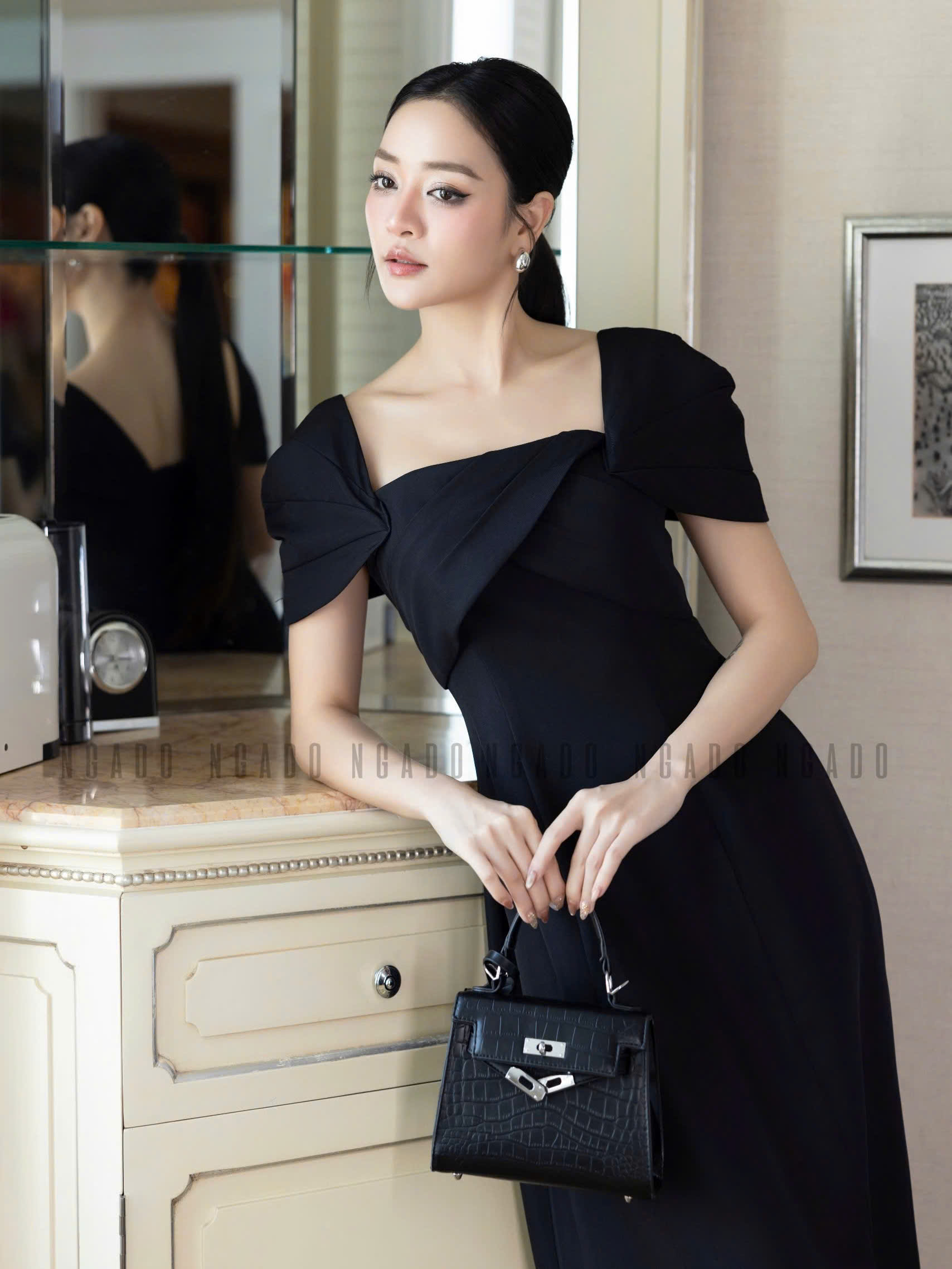 Đầm Ôm Đi Tiệc - tôn dáng kiêu sa - dáng đầm ôm tôn 3 vòng cơ thể từng đường nét - vai đắp xếp ly 1 bên cá tính - cổ tròn - tay sát