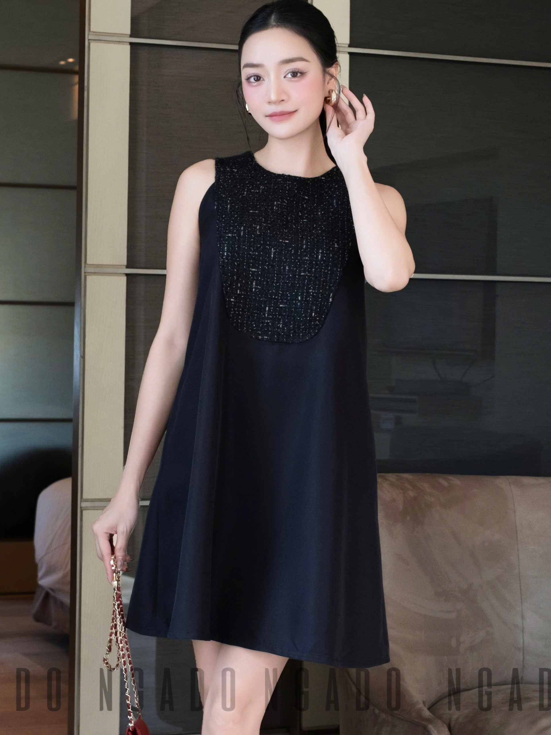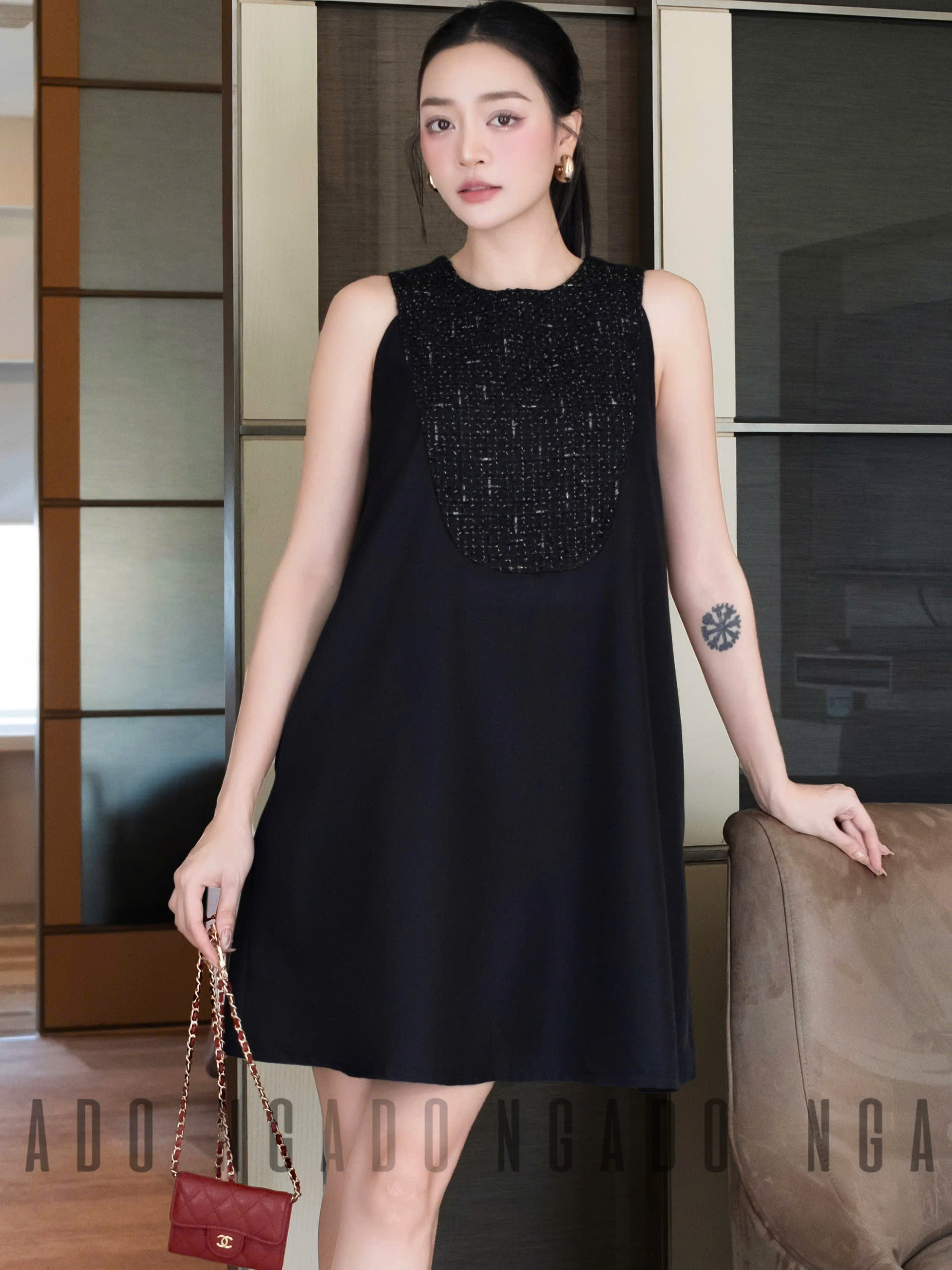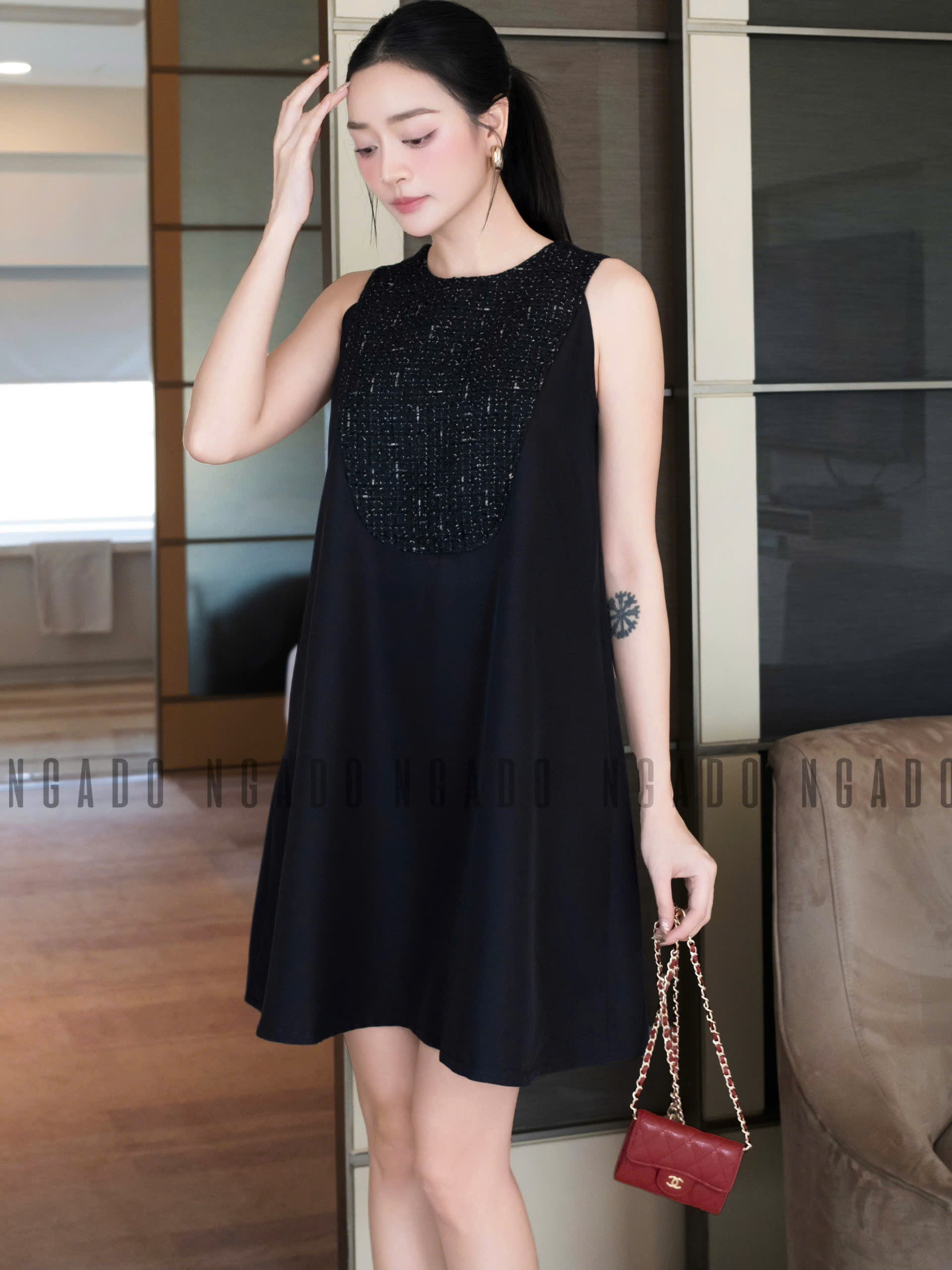 ✨Đầm đen phối tweed NGADO , đầm nữ ngắn , đầm thời trang , đầm dự tiệc