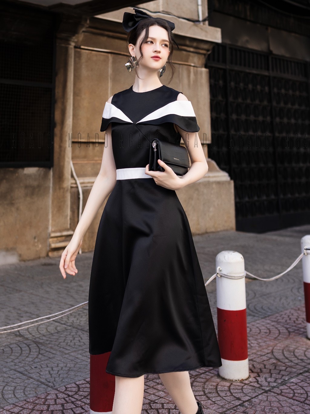 ღ THÔNG TIN SẢN PHẨM: Tên sản phẩm: Đầm đen tay con phối trắng Màu sắc: Đen phối trắng Chất liệu: Gấm trơn dày Chi tiết sản phẩm: không lót, không
