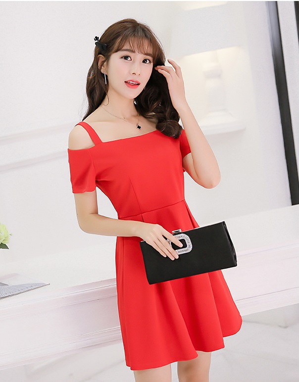 ღ THÔNG TIN SẢN PHẨM: Tên sản phẩm: Đầm đỏ bẹt vai Chất liệu: Chất gân ý Chi tiết sản phẩm: không lót, không túi Thông số size: S, M, L,