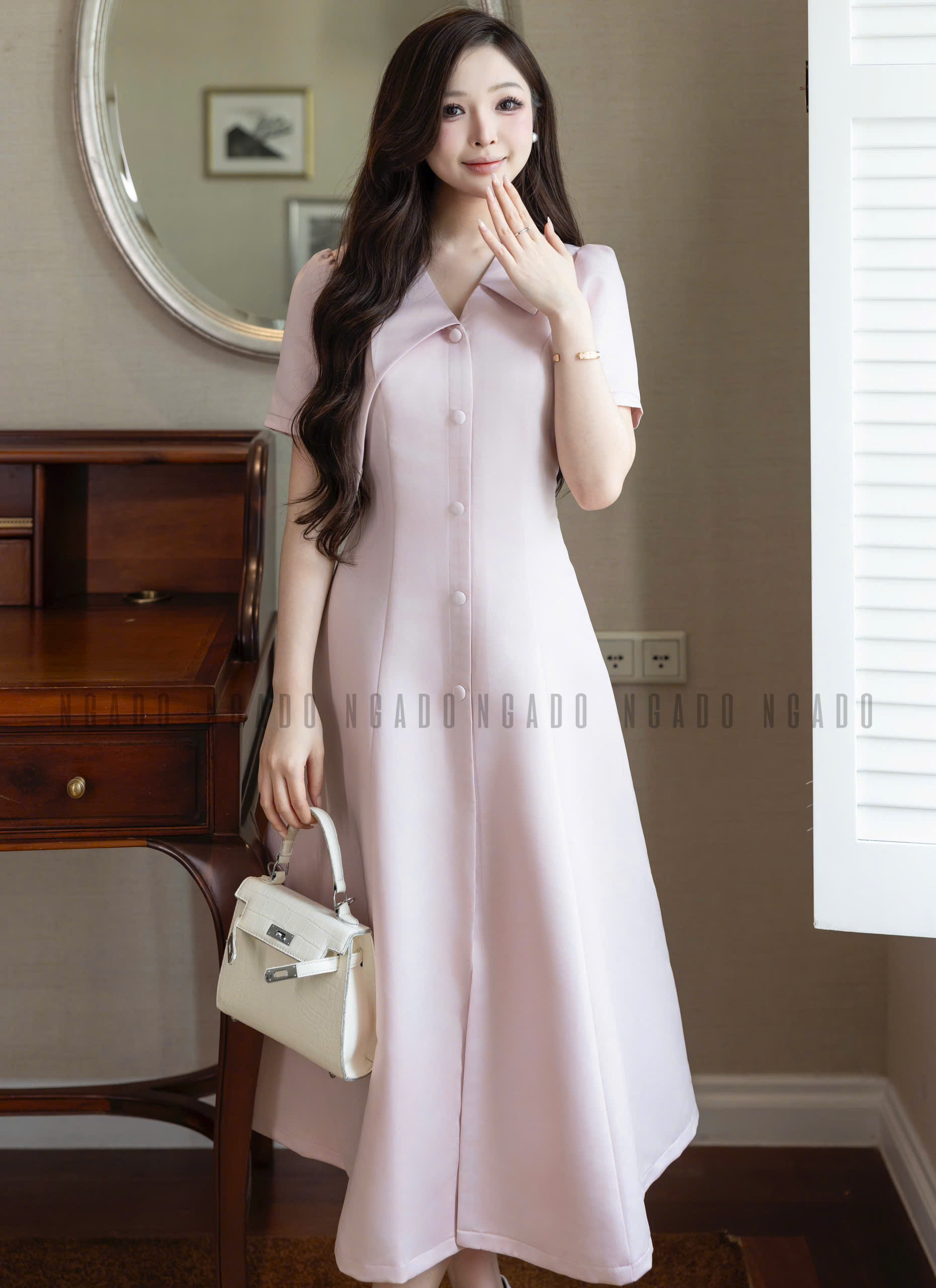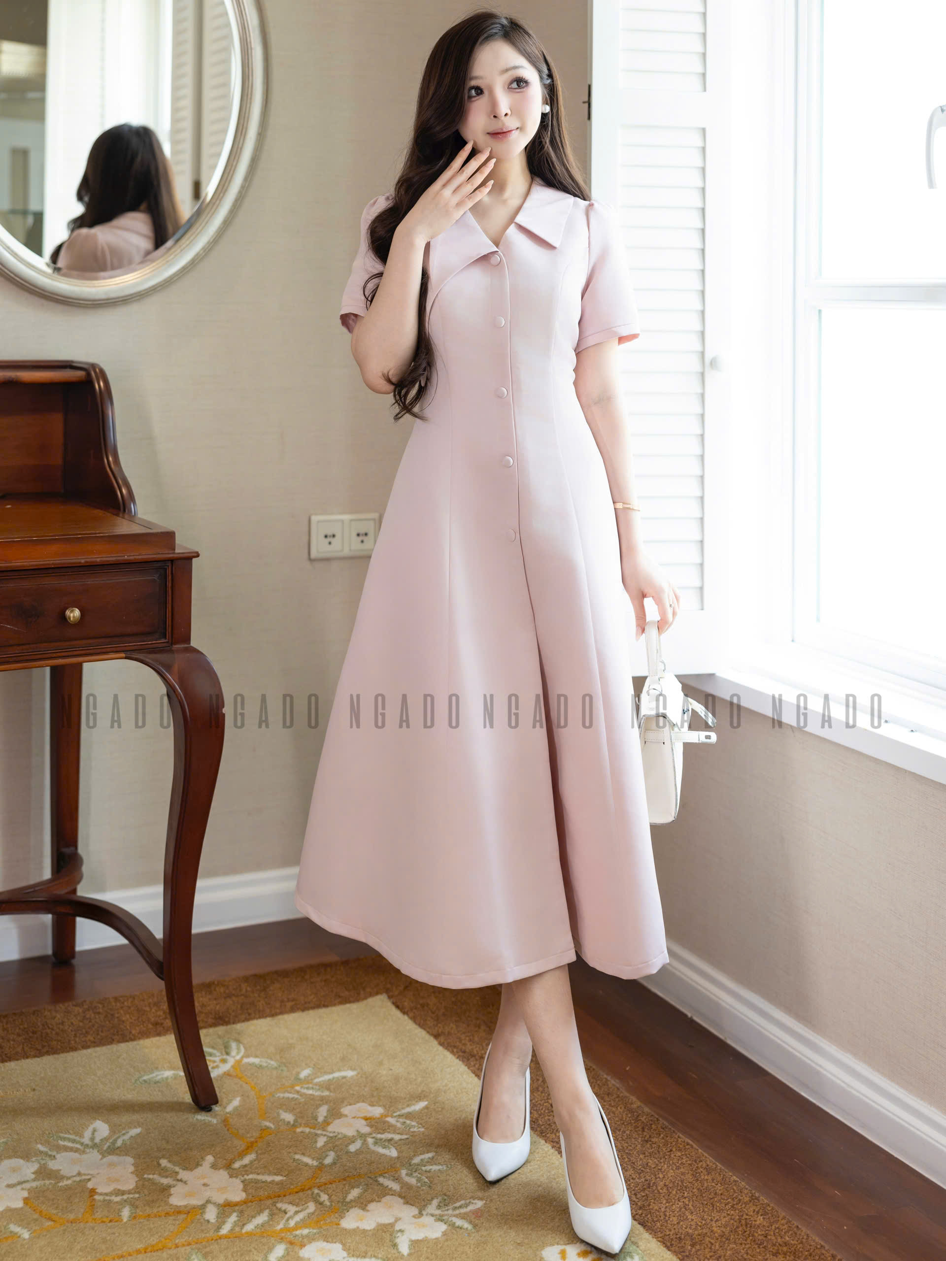 ✨Đầm hồng cổ vest NGADO , đầm công sở , dự tiệc