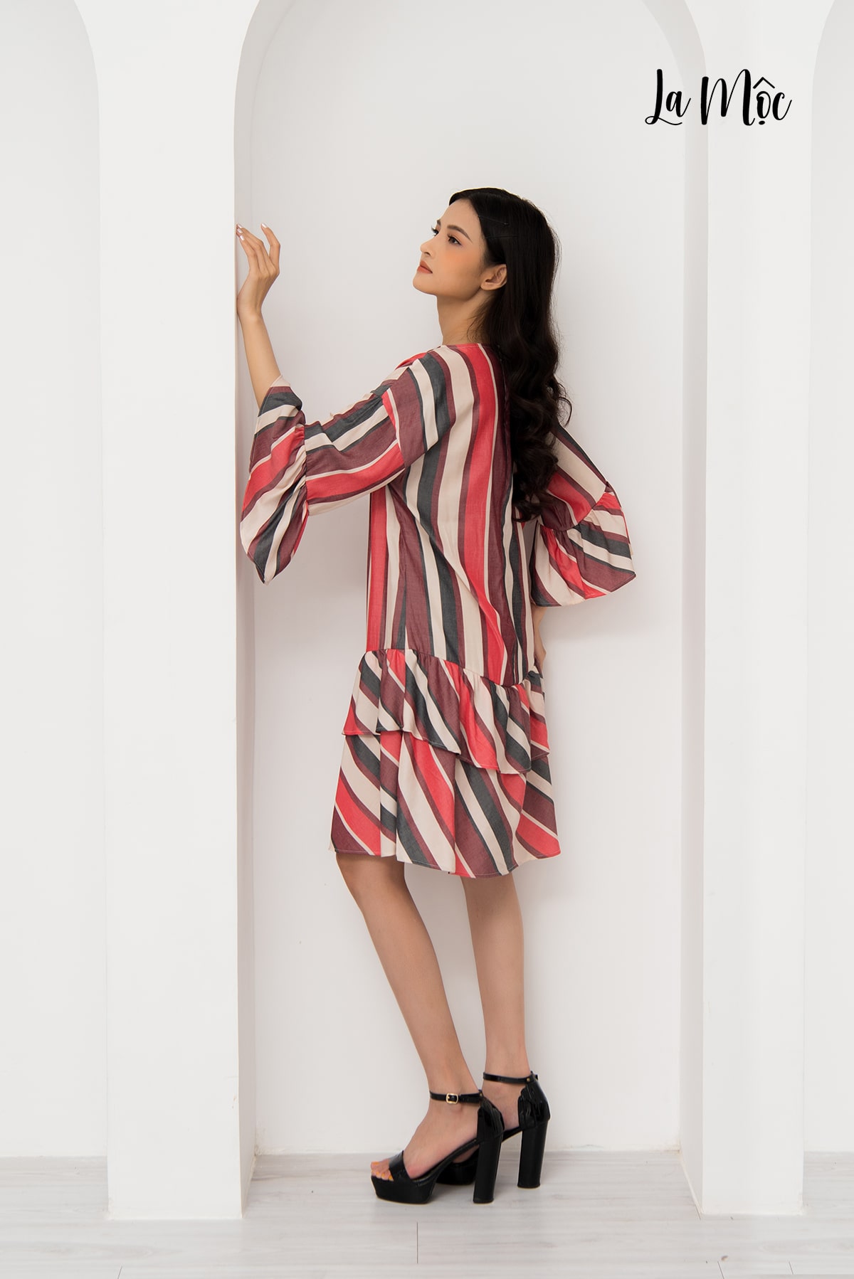 - Thông tin sản phẩm Mã sản phẩm: LM52101 Chất liệu: LỤA KOREA Đặc điểm: Thiết kế sọc trằng, đỏ, cổ tròn, tay lửng bèo 2 lớp, phom suông, tùng nhún, thắt lưng khoá D