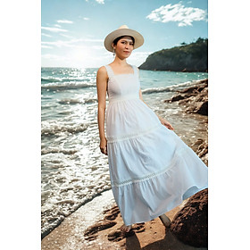 ✨Đầm Maxi Trắng Cotton Hai Dây Đi Biển Du Lịch Resorts Thơ DRE092 Thời trang Hity