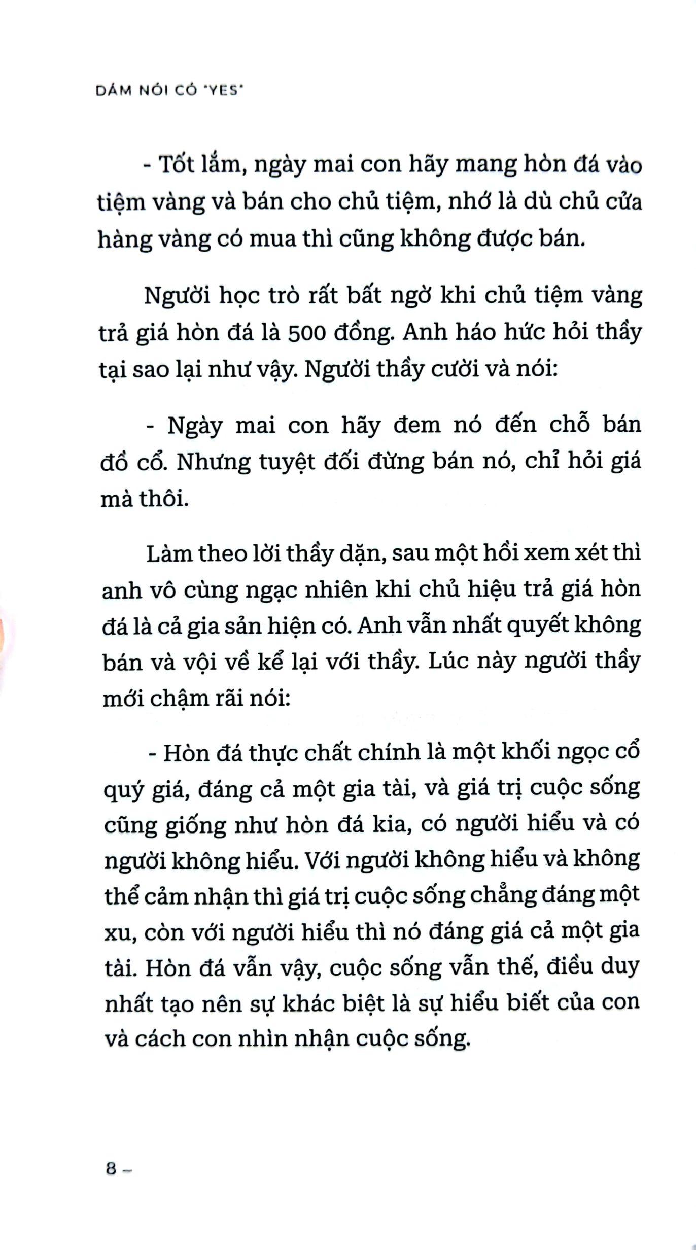 Dám Nói Có Cuốn sách không chỉ đề cập đến việc nói “CÓ” với cuộc sống, mà còn đề cập đến việc tìm ra sức mạnh bên trong chính m.ình để vượt qua những thách thức và khám phá những cơ hội mới ...