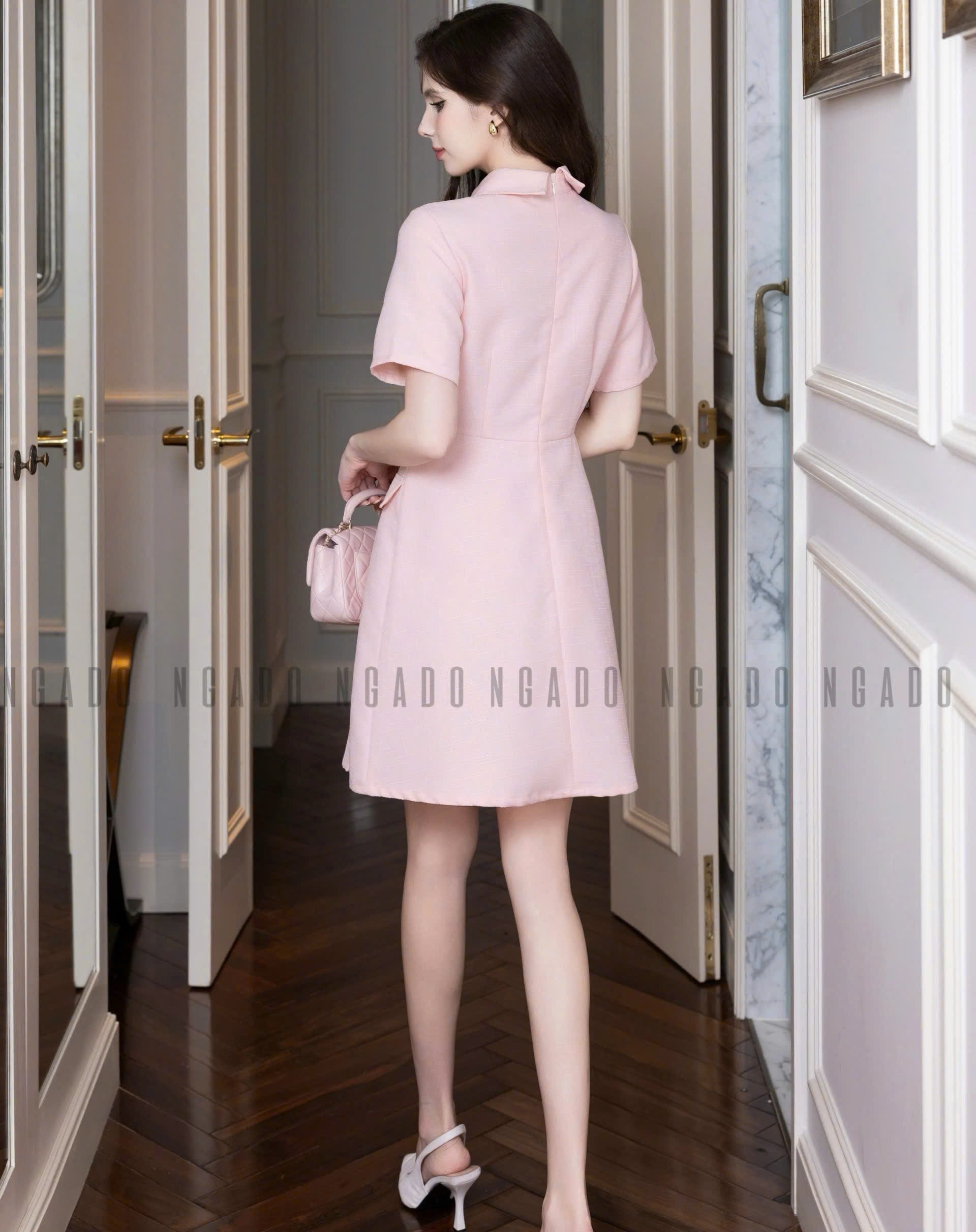 ✨Đầm sơ mi hồng ngắn tay NGADO , đầm sơ mi , đầm nữ , đầm công sở, dự tiệc