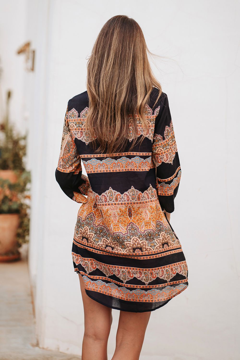 Đầm Boho Dài Tay Isla Bonita, chất lụa cao cấp, mềm mại, thun co giãn ở eo. Phom suông xòe rộng. Dài đầm 90cm (45x90) Phù hợp đi biển, dạo phố, công sở, hoặc dự