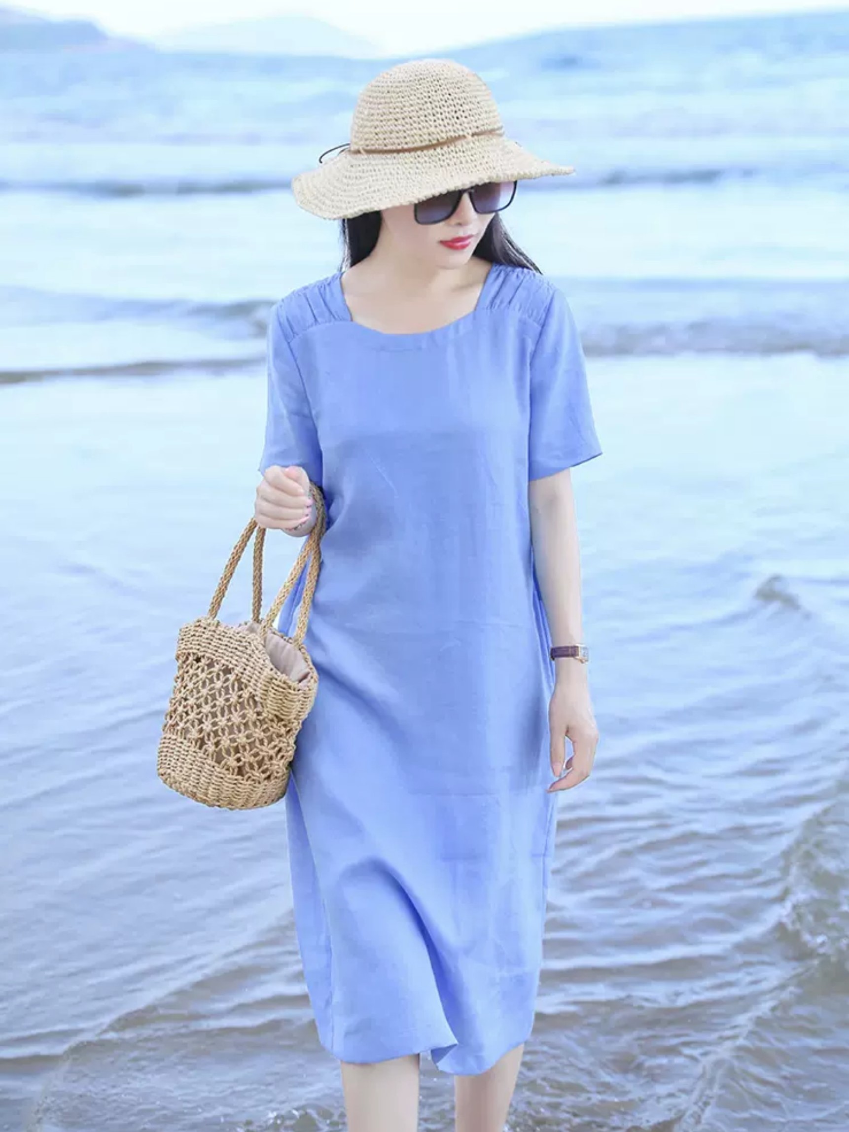 ღ THÔNG TIN SẢN PHẨM:   Tên sản phẩm: Đầm xanh babydoll sát nách   Màu sắc: Xanh biển   Chất liệu: chất cát hàn   Chi tiết sản phẩm: không lót, không túi