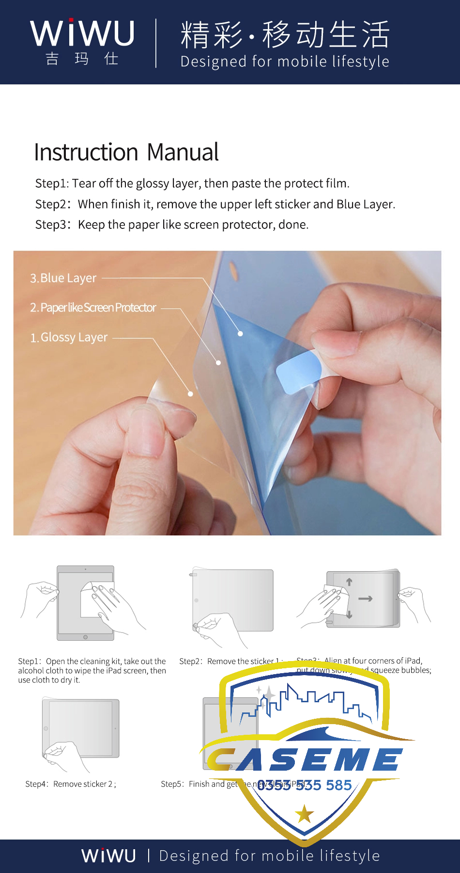 - Từ thương hiệu WIWU sản xuất riêng cho các dòng iPad - Chất liệu PT siêu mỏng 0.19mm, bám dính tốt - Dán có độ cứng 4H chống trầy tốt - Dễ dán và