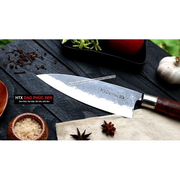 Tên sản phẩm: Dao Phúc Sen, Dao Thái Kiểu 03 Cán Gỗ Cẩm - Chức năng: chuyên thái thịt, rau củ - Chất liệu: 100% thép nhíp ô tô được lựa chọn và kiểm duyệt