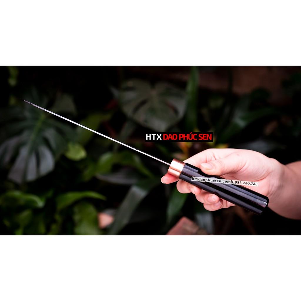 Dao Phúc Sen bản Takohiki - Kích thước: lưỡi: 24cm, cán: 12cm, rộng: 3.5cm, dầy: 2.5 ly, trọng lượng: 200g - Chức năng: sử dụng chuyên thái thịt ,cá, rau củ và các thực phẩm
