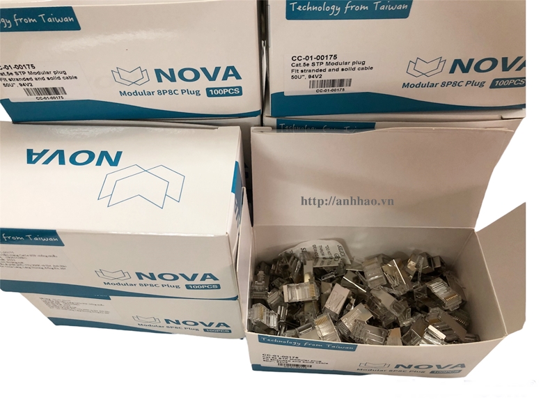 Đầu bấm mạng RJ45 Cat5 chống nhiễu Nova chính hãng là dòng sản phẩm cao cấp do công ty Ánh Hào nhập khẩu và phân phối trực tiếp.Hạt mạng RJ45 Cat5e Nova chống nhiễu được sản xuất trên dây chuyền hiện đại của Đài Loan, chân tiếp xúc được làm từ 100% đồng mạ vàng 50U bằng máy X-ray đảm bảo độ chính xác tối đa nhất cho mỗi đầu bấm được xuất ra thị trường.