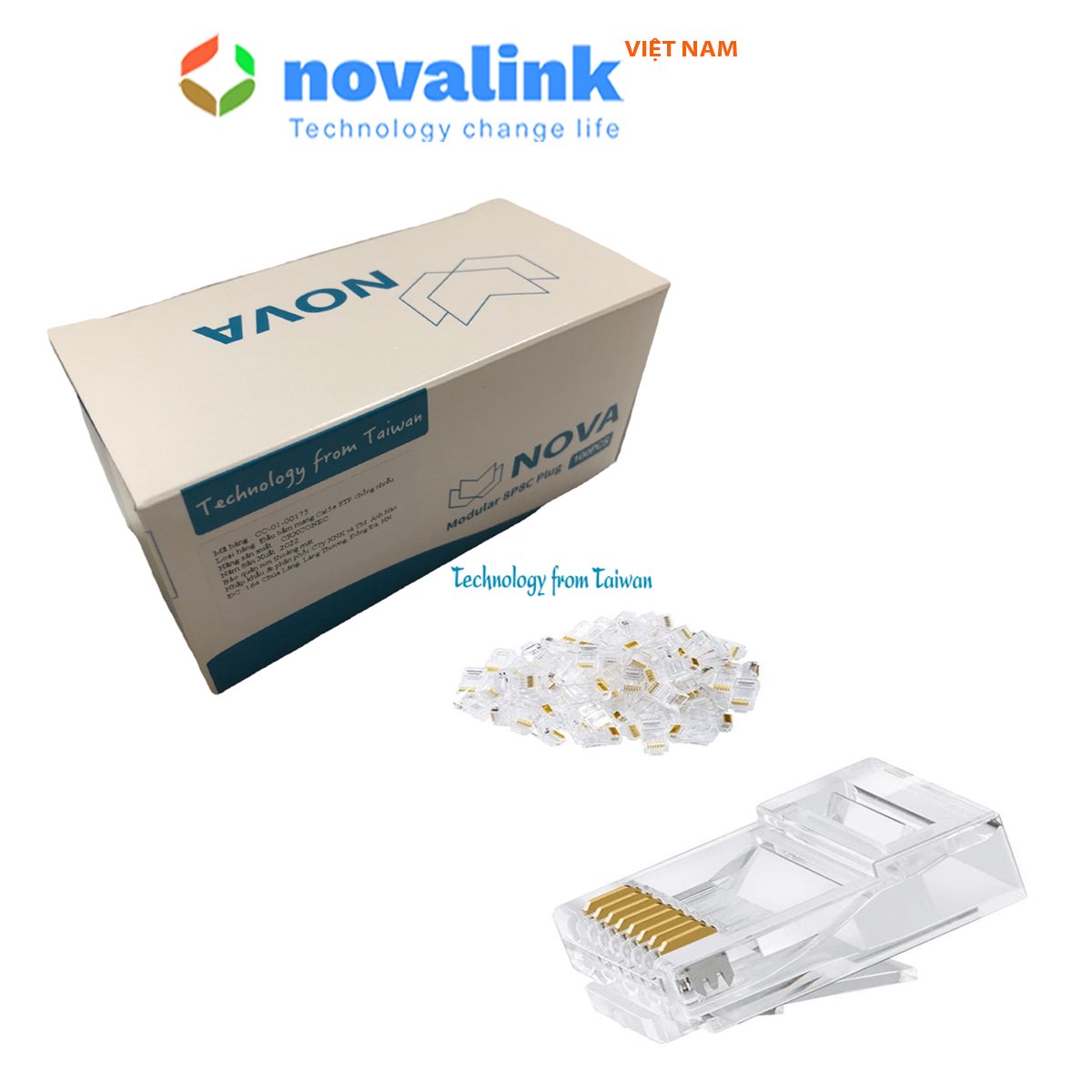 Hạt mạng RJ45 cat5 chống nhiễu Nova CC-01-00175 chân tiếp xúc mạ vàng 50U cao cấp Đầu bấm mạng RJ45 Cat5 chống nhiễu Nova  chính hãng là dòng sản phẩm cao cấp do công ty