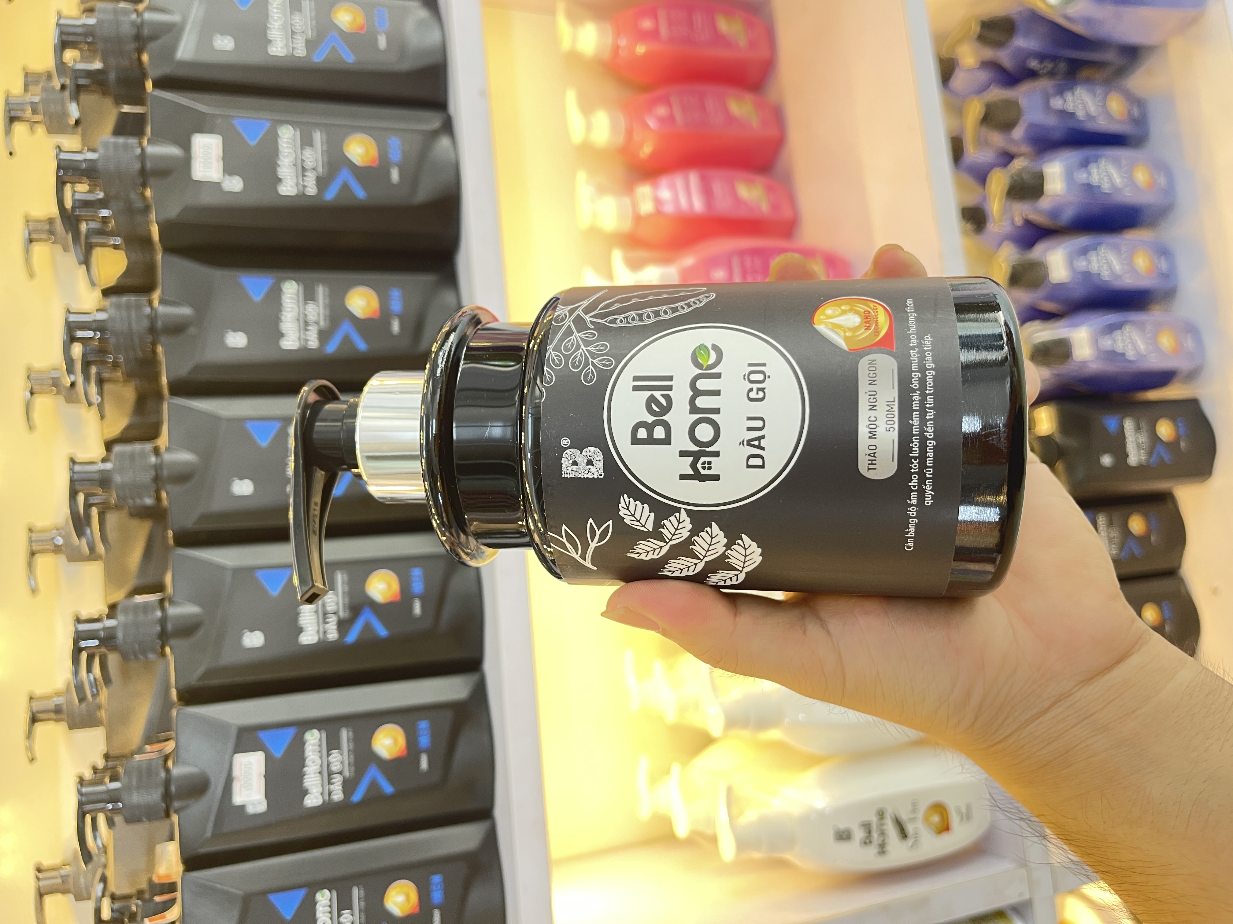 - ĐẶC ĐIỂM NỔI BẬT CỦA DẦU GỘI CÔNG NGHỆ SINH HỌC BELL HOME THẢO DƯỢC NGỦ NGON 500ML Sự kết hợp giữa các thành phần kể trên đã tạo ra sản phẩm tuyệt vời trong đó phải kể đến những công dụng như Công nghệ chuyển giao từ Đức kết hợp với công thức chăm sóc sâu từ Nhật Bản Từ liệu pháp hương thơm cho đến cơ chế tác động vào não bộ, nhịp tim, nhịp thở… Tất cả đã được nghiên cứu, phát triển trong các công trình khoa học được chuyển giao từ Bell Flavors & Fragrances tại Đức, có 200 năm lịch sử, cùng công thức chăm sóc da và tóc chuyên sâu của Nhật, để cho ra đời bộ sản phẩm dầu gội ngủ ngon Bell Home. Tác động đến hệ thần kinh, tần sóng não Alpha, Beta trong não bộ Với 3 loại hoạt chất và tinh dầu cho vào Bộ dầu gội sữa tắm Bell Home tạo nên cơ chế tắm gội xong, sẽ ảnh hưởng trực tiếp đến hệ thần kinh, đến sóng não Alpha, Beta trong não bộ của chúng ta, mang đến những tác động tích cực cải thiện giấc ngủ, giảm thiểu tình trạng lo âu, đau nhức đầu và mệt mỏi. Ngăn chặn sự tăng trưởng của tế bào sừng Không chỉ khác biệt bởi liệu pháp hương thơm tác động tích cực cải thiện giấc ngủ, Bộ dầu gội sữa tắm ngủ ngon Bell Home còn có tác dụng vượt trội trong việc ngăn chặn sự tăng sinh của tế bào sừng, đặc trị gàu, ngứa, đồng thời cải thiện các tình trạng viêm da tiết bã, á sừng, vẩy nến một cách tối ưu nhất. Dưỡng chất thảo dược cho giấc ngủ tròn đầy Kết hợp giữa thành phần dưỡng tóc tự nhiên cổ truyền như bưởi, bồ kết, trà xanh, nha đam, gừng, hà thủ ô... và tinh dầu ngủ ngon tạo cảm giác thư giãn sau mỗi lần gội. Áp dụng công nghệ Nano vàng, Nano bạc tiên tiến Dầu gội công nghệ sinh học Bell Home thảo dược ngủ ngon áp dụng công nghệ Nano vàng, Nano bạc tiên tiến thúc đẩy tế bào mới tái tạo nhanh hơn, giúp da đầu, da tóc khỏe mạnh hơn Công thức dầu gội an toàn, lành tính Sản phẩm được chiết xuất từ thiên nhiên rất an toàn và lành tính, giá trị pH phù hợp với da đầu người châu Á hỗ trợ loại bỏ các tạp chất tích tụ để làm sạch sâu cho tóc, đánh bay gàu ngứa, mồ hôi, vi khuẩn trên da đầu. Dầu gội công nghệ sinh học Bell Home hỗ trợ sạch gàu, ngứa dai dẳng Sản phẩm hỗ trợ cung cấp đủ độ ẩm, cân bằng dầu trên da đầu, khóa ẩm giúp tóc không bị khô xơ và ngăn ngừa tình trạng tiết bã nhờn, giảm tình trạng tóc chẻ ngọn. Sản phẩm dành cho mọi nhà Được chiết xuất từ những tinh hoa, tinh túy từ thiên nhiên, “lành và sạch”, bộ sản phẩm dầu gội, sữa tắm ngủ ngon nhà Bell Home đã khẳng định chất lượng và sự tin yêu của rất nhiều khách hàng.