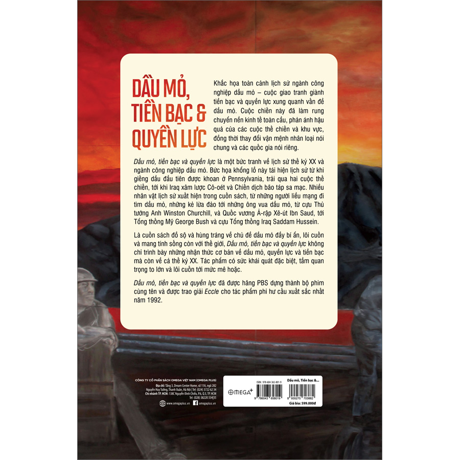 Cuốn sách Dầu mỏ, Tiền bạc & Quyền lực khắc họa toàn cảnh lịch sử ngành công nghiệp dầu mỏ - cuộc giao tranh giành quyền lực và sự giàu có xung quanh vấn đề dầu mỏ. Cuộc chiến này đã làm rung chuyển nền kinh tế toàn cầu, phản ánh hậu quả của các cuộc chiến tranh đồng thời thay đổi vận mệnh nhân loại nói chung và các quốc gia nói riêng. Dầu mỏ, Tiền bạc & Quyền lực là một bức tranh về lịch sử thế kỷ XX, cũng là về ngành công nghiệp dầu mỏ. Bức họa khổng lồ này tái hiện lịch sử từ khi người ta khoan giếng dầu đầu tiên ở Pennsylvania, trải qua hai cuộc đại chiến, tới khi Iraq xâm lược Kuwait và chiến dịch Bão táp sa mạc. Bối cảnh được mở rộng từ những người liều lĩnh, những kẻ lừa đảo tới những ông vua dầu mỏ, từ cựu Thủ tướng Anh Winston Churchill, và quốc vương Saudi Arabia Ibn Saud, tới Tổng thống Mỹ George Bush và Saddam Hussein, cựu Tổng thống Iraq. Là cuốn sách tiêu biểu về các vấn đề nhức nhối trong lĩnh vực dầu mỏ, Dầu mỏ, Tiền bạc & Quyền lực cung cấp cho chúng ta những nhận thức cơ bản không chỉ riêng lĩnh vực này mà còn về thế kỷ của chúng ta.