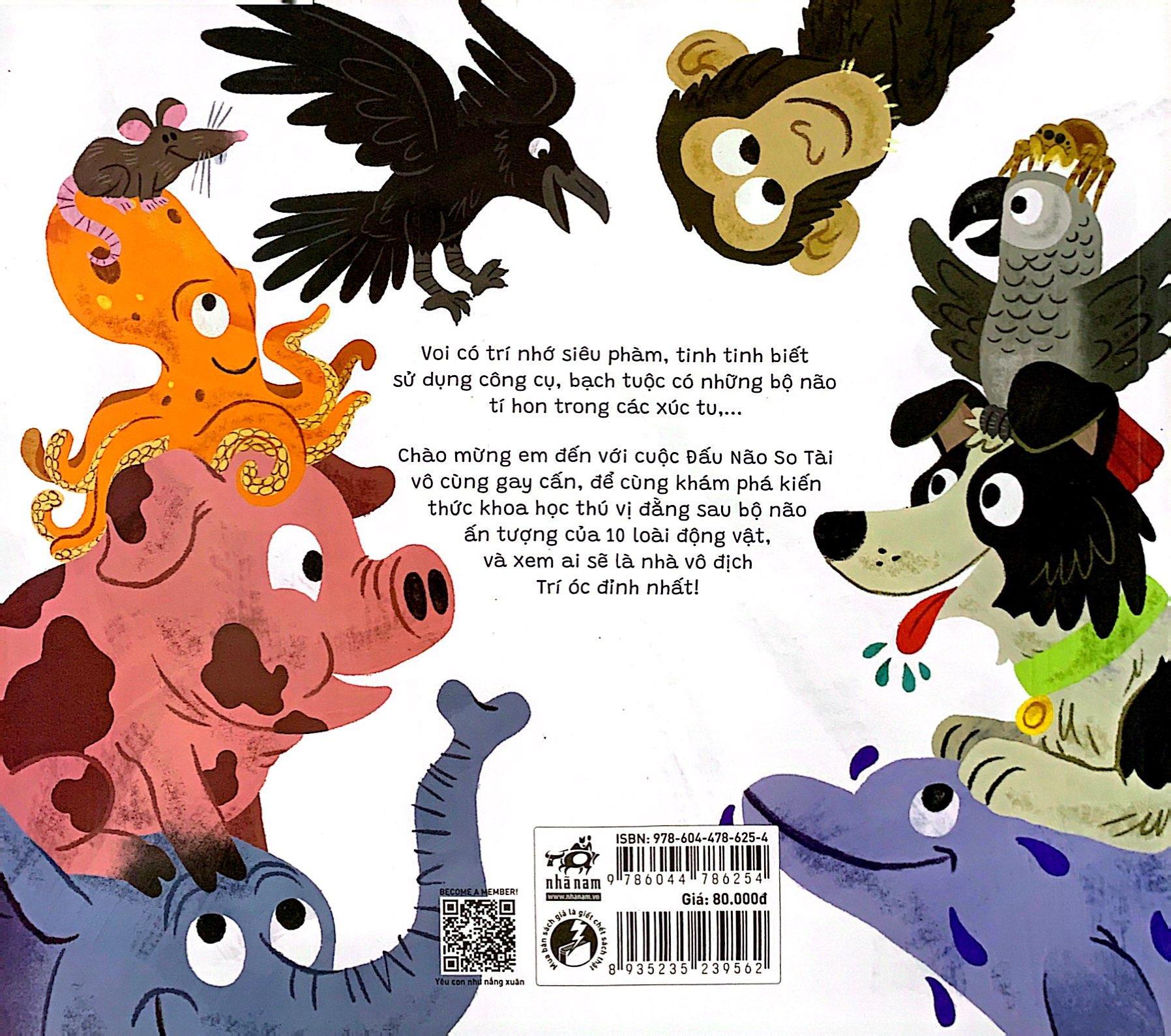 Đấu Não So Tài - Khoa Học Đẳng Sau Não Bộ Muôn Loài Voi có trí nhớ siêu phàm, tinh tinh biết sử dụng công cụ, bạch tuộc có những bộ não tí hon trong các xúc tu, Chào mừng bạn đến với cuộc Đấu Não So Tài vô cùng gay cấn, để cùng khám phá kiến thức khoa học thú vị đằng sau bộ não ấn tượng của 10 loài động vật, và xem ai sẽ là nhà vô địch Trí óc đỉnh nhất! Sách dành cho tuổi 6+