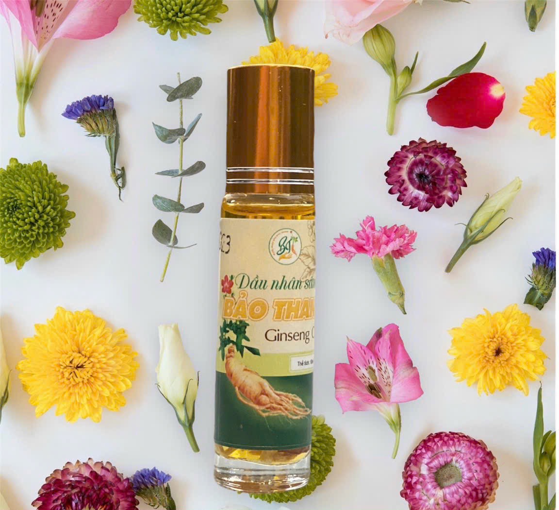 Thành phần : Bạc hà 13% , Nhân sâm 35% và các thành phần khác Hướng dẫn sử dụng : Thoa tinh dầu vào vùng đau nhức, ngứa ,khó chịu Thoa trực tiếp lên 2 bên thái dương Dùng để xông,hít, ngửi Cách bảo quản : để nơi khô ráo thoáng mát, tránh xa tầm tay trẻ em *Lưu ý : không thoa trực tiếp lên chỗ bị viêm ,loét