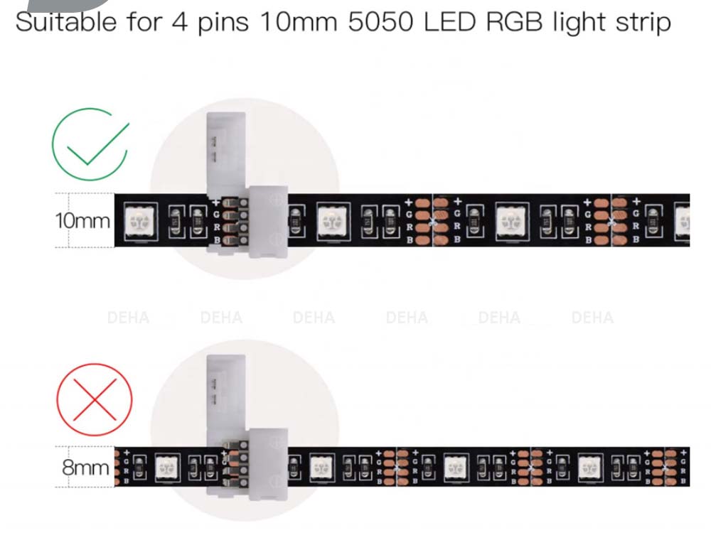 ✨Đầu nối chữ thập, chữ X, dấu cộng + 4 chân cho led dây dán 5050, 2835, 3528 RGB đổi màu connector 4P pin 10 mm trang trí dán tường thạch cao, cây máy tính, màn hình, ti vi, TV, Gaming, Tiktok dán tường, chống nước bền đẹp- Chính hãng DEHA