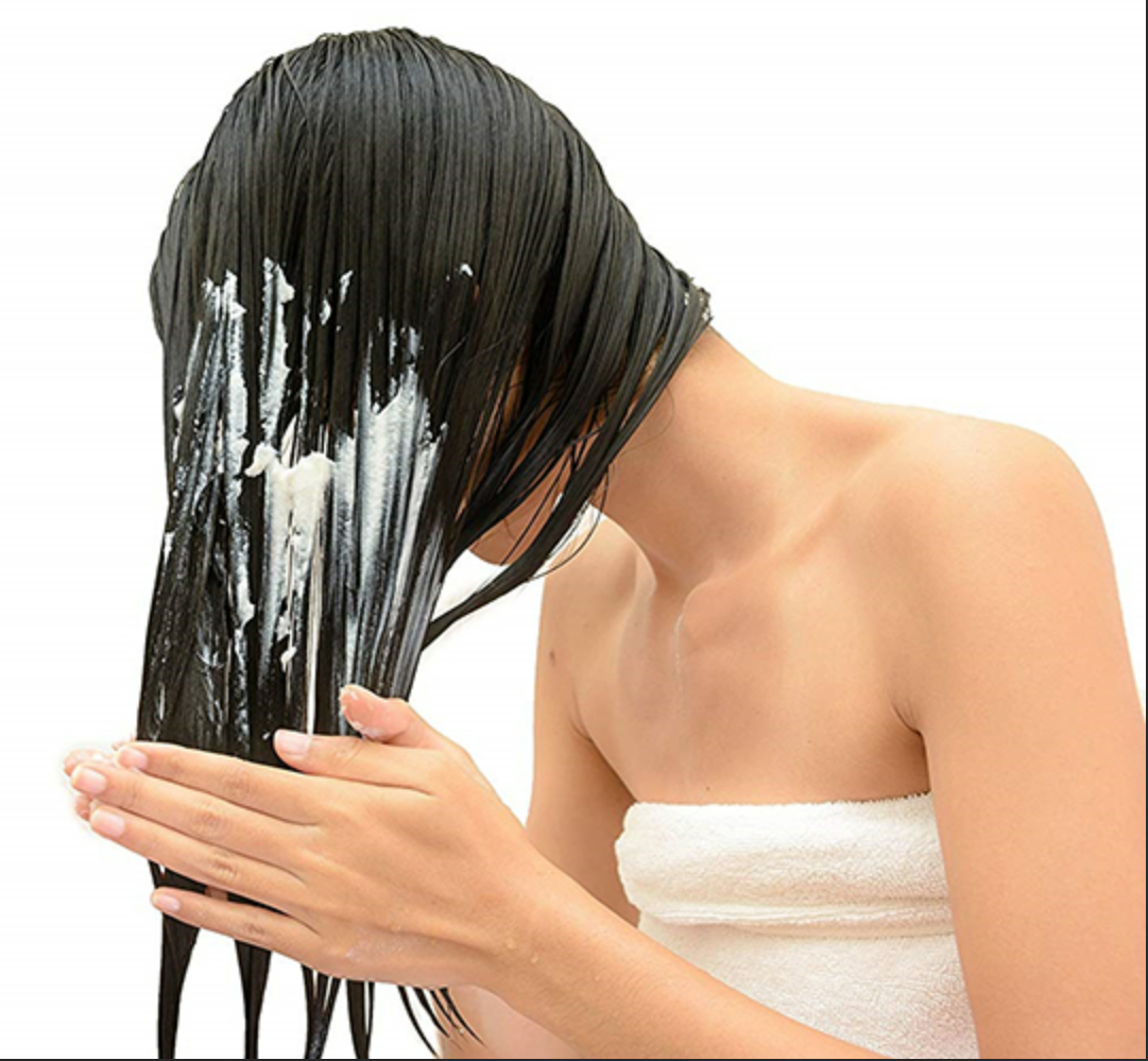 - Sau khi gội sạch đầu với dầu gội, lấy 1 lượng vừa đủ dầu xả thoa lên tóc, nhẹ nhàng massage tóc và gội lại bằng nước sạch.