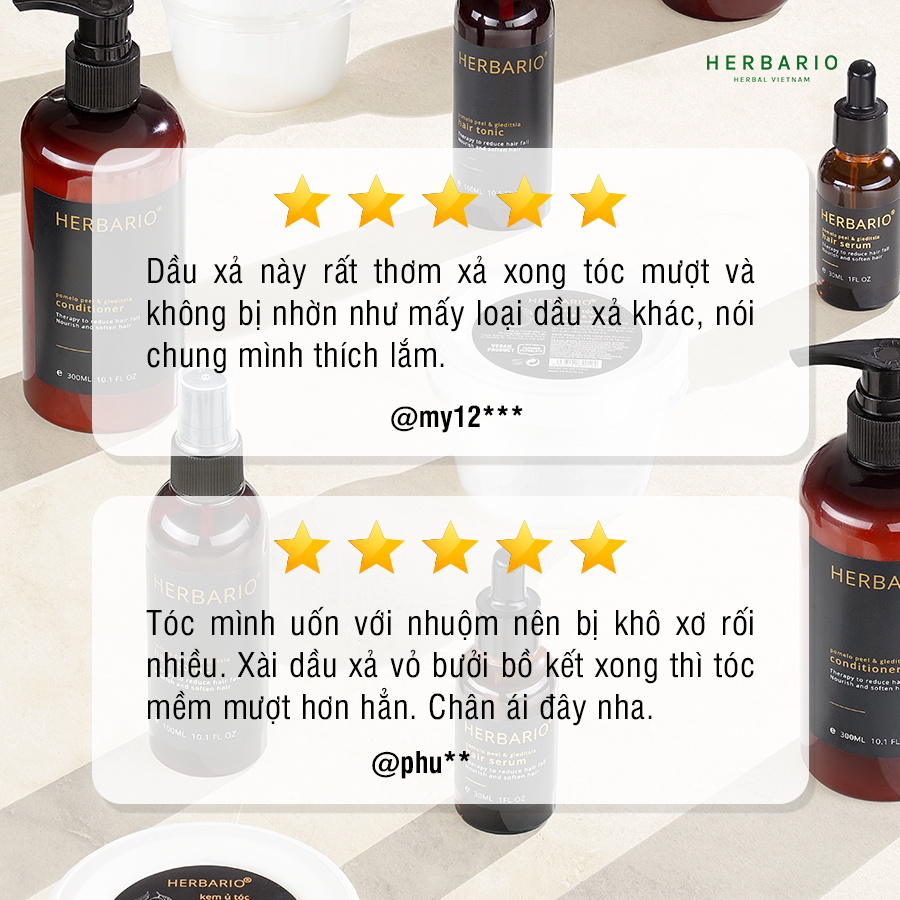 - Kéo dài thời gian trẻ của mái tóc Thành phần chính dầu xả bưởi & bồ kết herbario