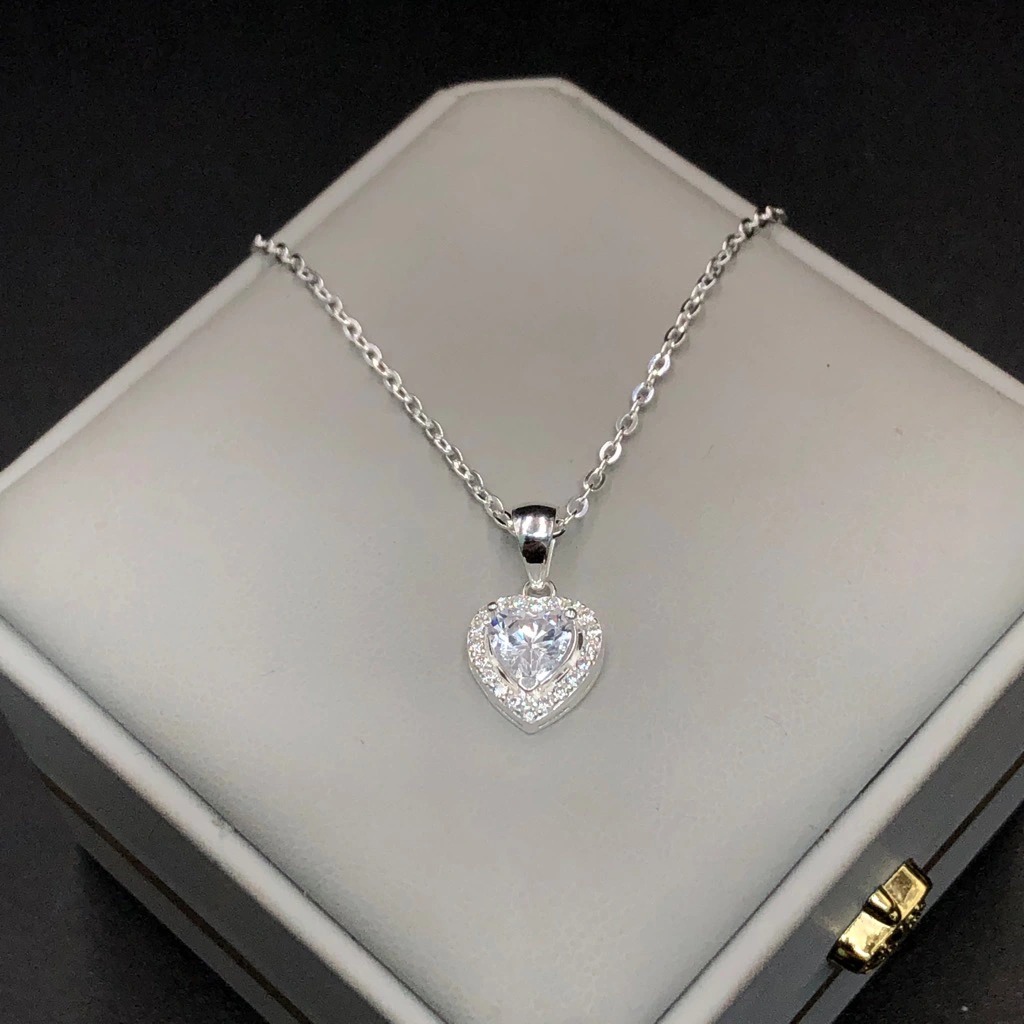 Dây Chuyền Vòng Cổ Nữ Bạc Ta Trái Tim Đính Đá Cao Cấp BẠC HIỂU MINH DMD486