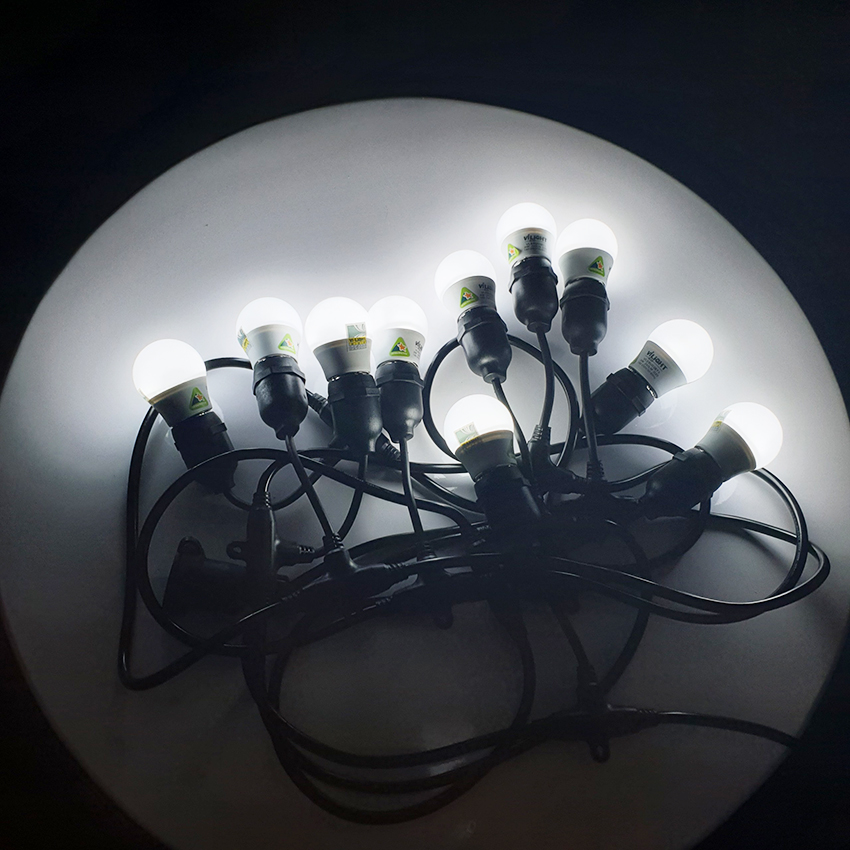 Dây chui E27 ngoài trời lý tưởng cho trang trí chiếu sáng không gian tiệc ngời trời, cafe vườn, trang trí quấn cây ngoài trời, quán ăn, lắp trong rạp lớn… tùy ý thích của quý khách ứng dụng nó.