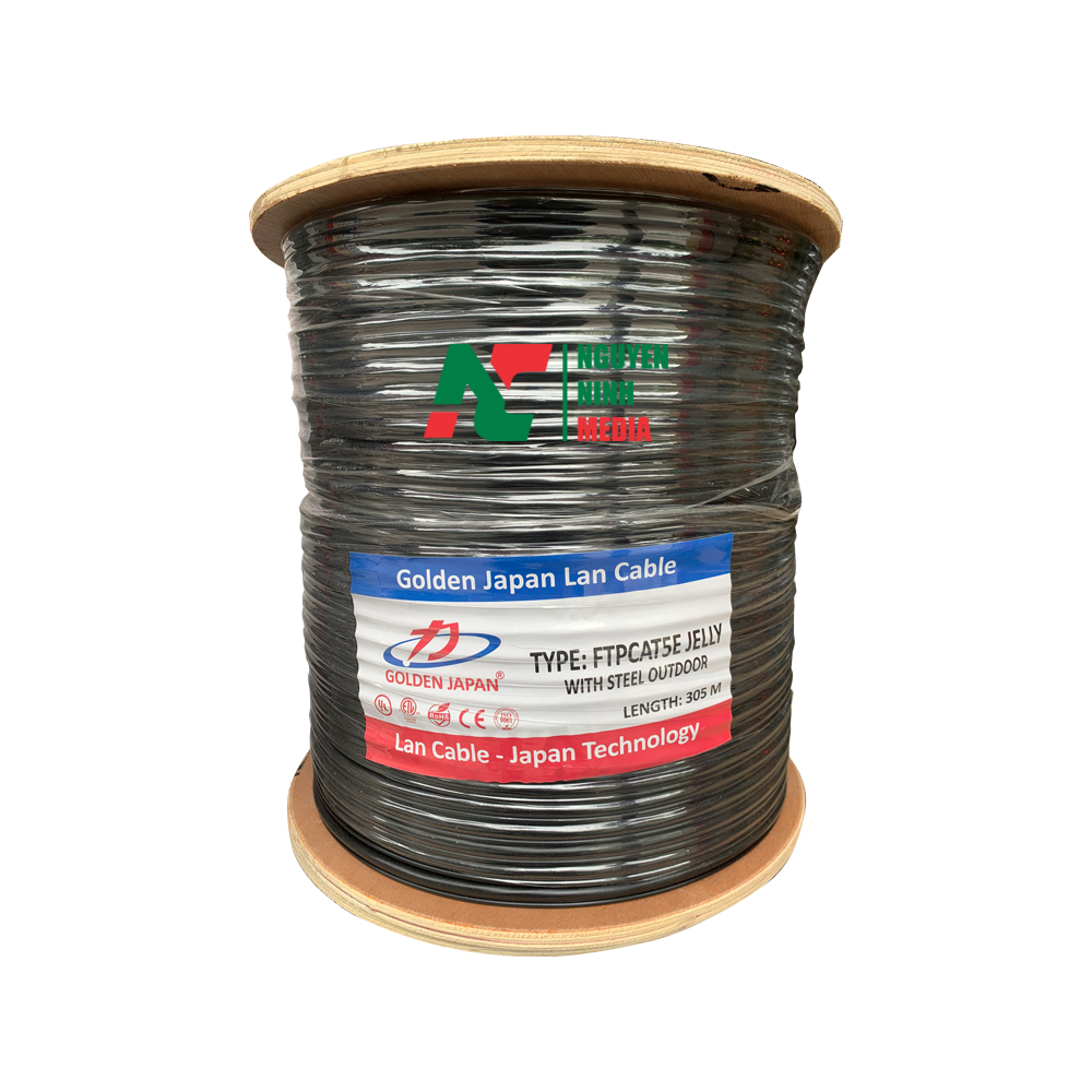 ✨Dây Mạng Ngoài Trời 8 Lõi Golden Japan Cat5e Có Sợi Thép Chịu Lực, Bọc Bạc, Phủ Dầu Chống Ẩm - Hàng Chính Hãng