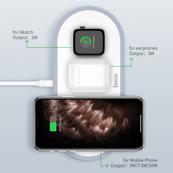 Đế sạc nhanh không dây Hoco CW24 3 in 1, sạc cùng lúc 3 thiết bị