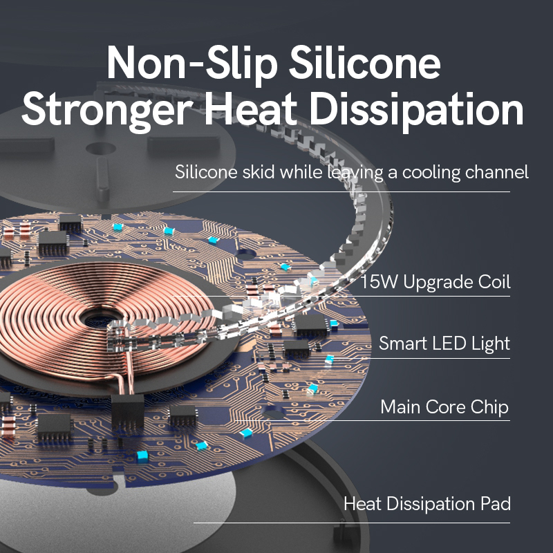 - Sạc ổn định trên máy tính để bàn với miếng đệm chống trượt bên dưới bộ sạc không dây.